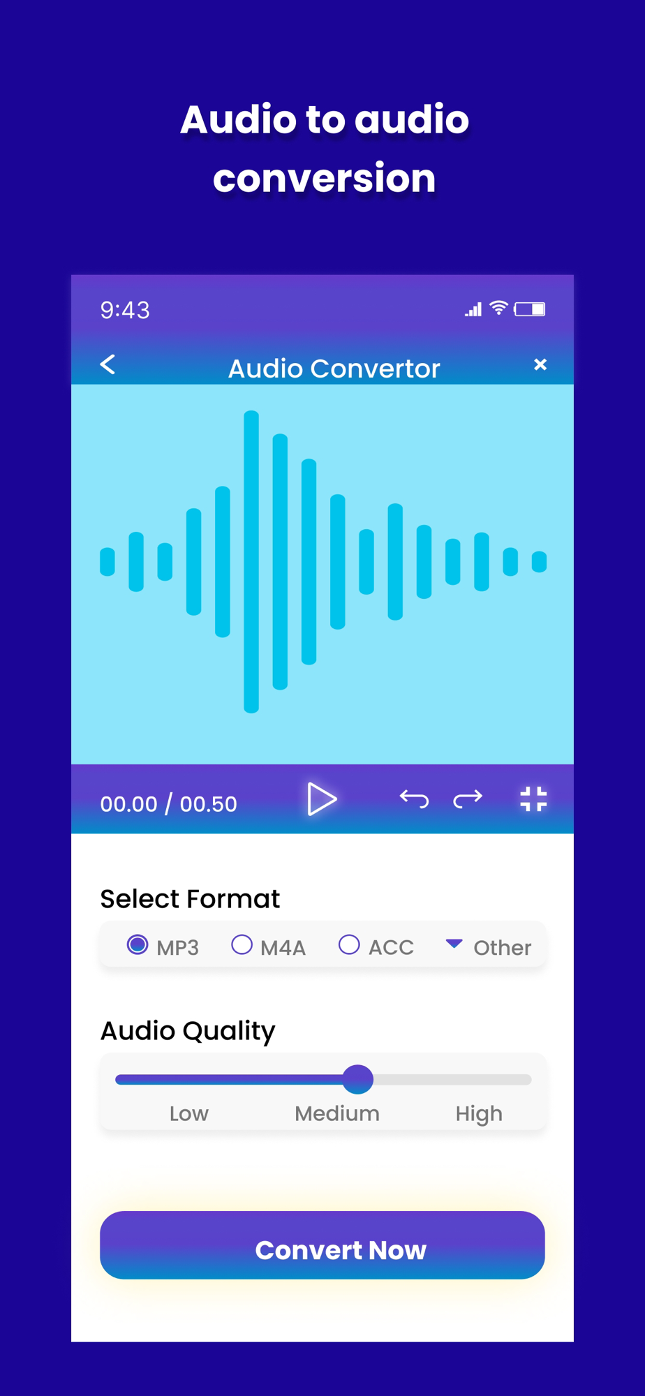 - Convert any audio file to MP3, WAV, FLAC, AAC and other formats.