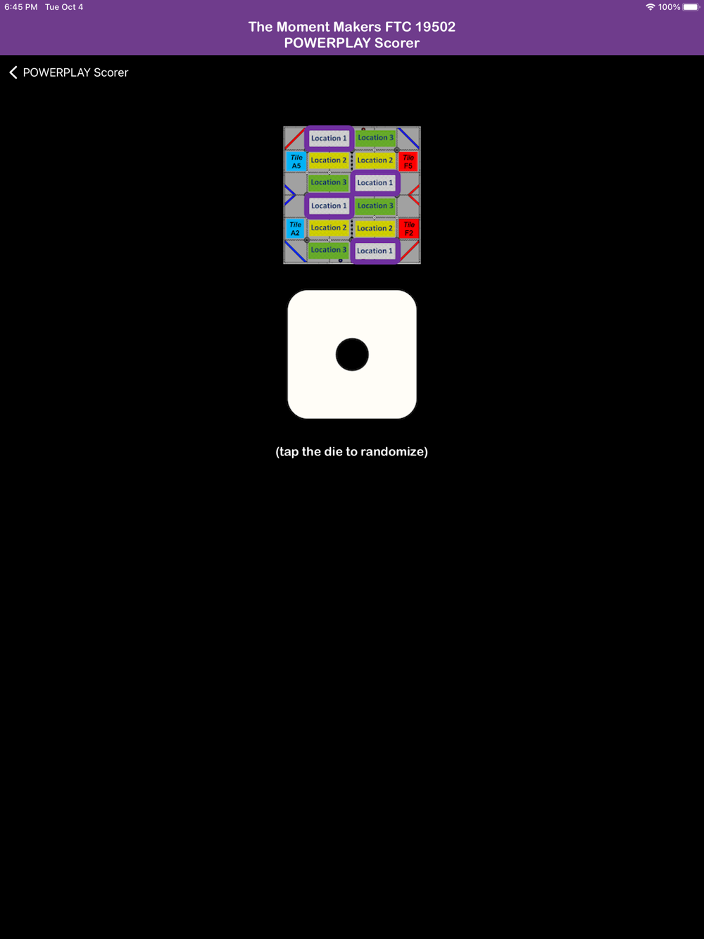 An unofficial app for scoring, timing, and randomizing practice matches in the FIRST Tech Challenge 2022-2023 season: POWERPLAY presented by Raytheon Technologies. The main screen allows you to record points for the whole alliance, with the total points accumulated and penalties given to the opposing alliance displayed at the top. The timing screen shows the current time on the clock and plays match sounds. In addition, you can switch between the scoring and the timing screen to allow for real-time scoring; the timer and the sounds will continue to run in the scoring section of the app! The randomization screen will show you the randomized number, as well as the correct signal orientation and the matching signal zone.