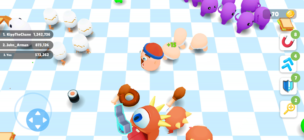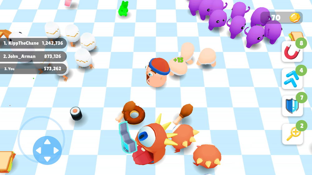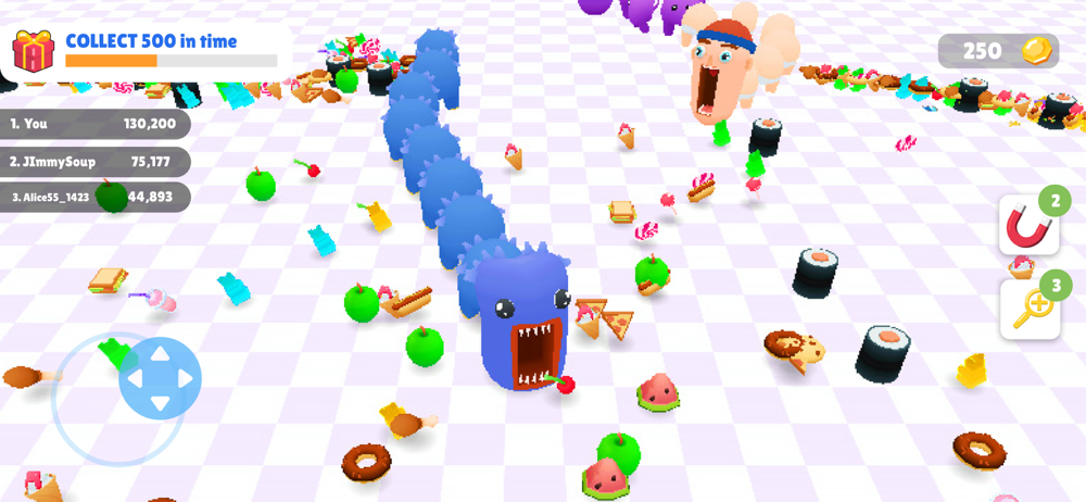 In addition to tasty treats, many boosters will be waiting for you in the arena. Speed up, use a food magnet, and become invincible! make your task to win the battle royale match much easier Collect all the boosters to get various bonuses and take down all enemies!