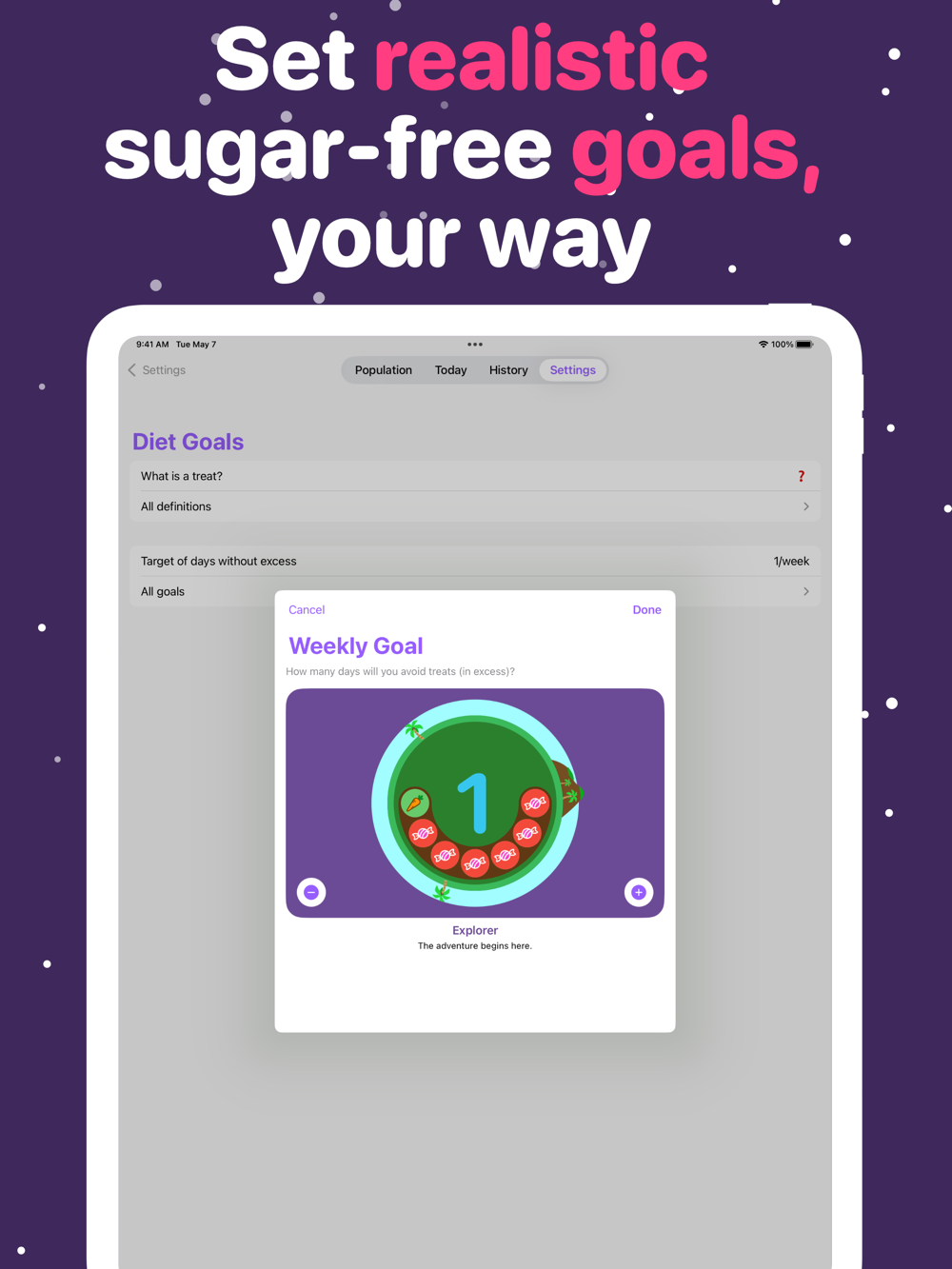 The aim isn’t to beat you up but to inspire and reward — No Treat Today helps you track your progress without the demoralization that can come from having to restart a streak because life got in the way.