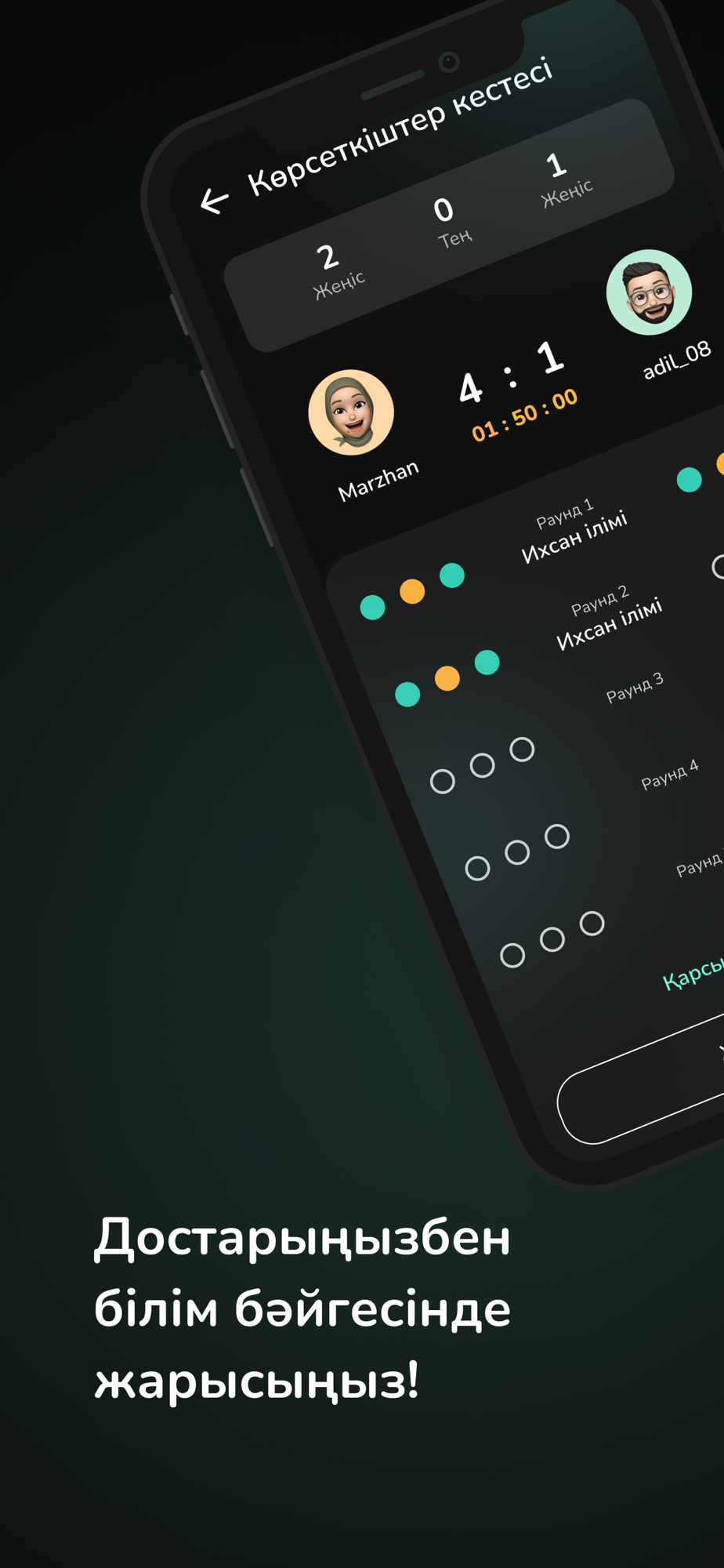 Басқа жобалардан ерекшелігі - асыл дініміздегі ақпараттарды ойын ойнап, бір-бірімізбен жарысу арқылы есте сақтауға болатындығы. Яғни төменде көрсетілген 10-ға жуық категорияның бірін таңдап, қысқа уақыт аралығында сұрақтарға қарсыласыңызбен кезек-кезек жауап бересіз.
