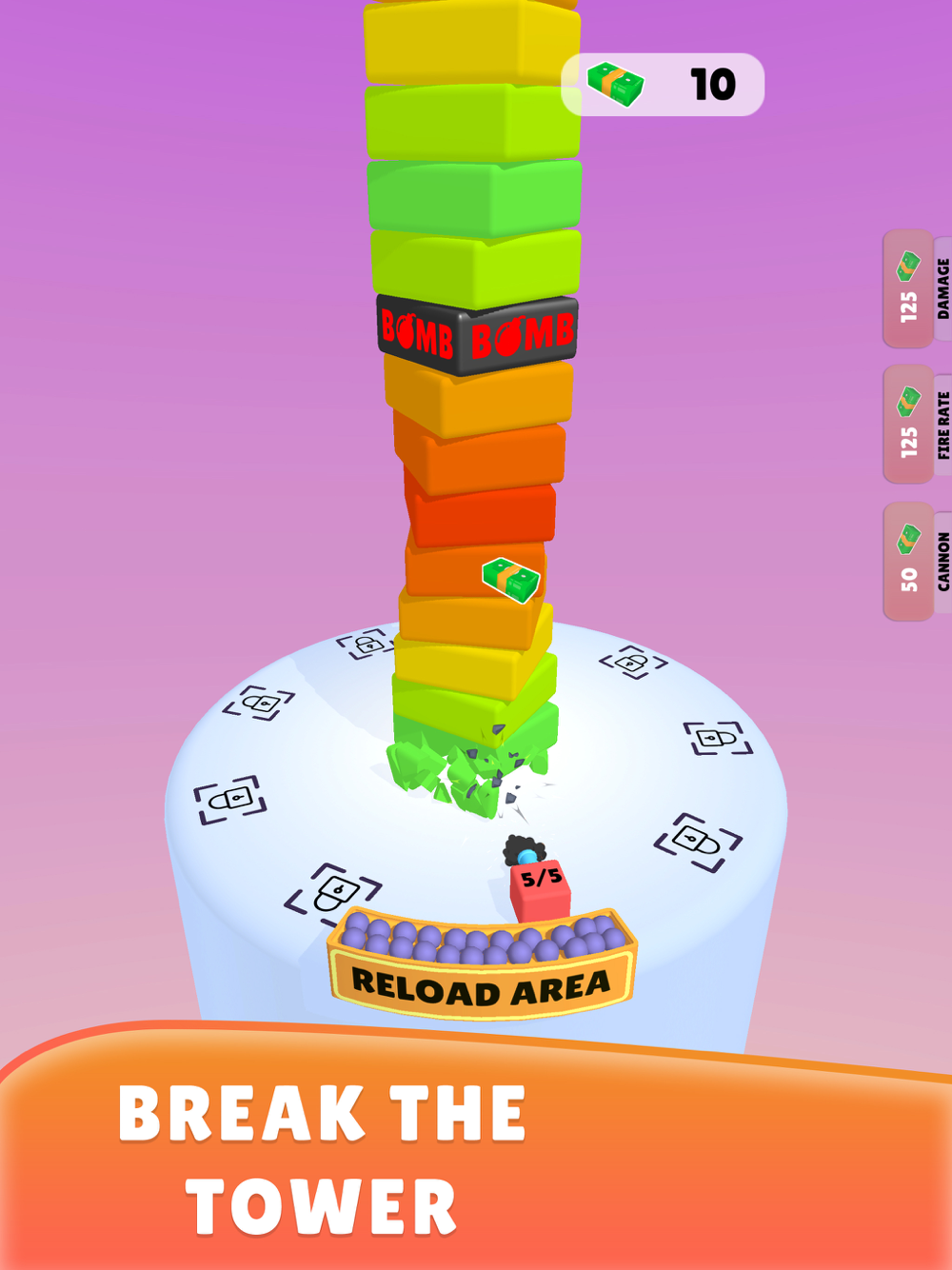 Upgrade your cannons, destroy the tower. Create your own cannon army!