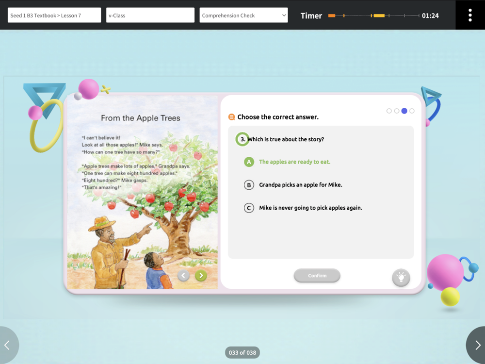 Virtual Teacher의 설명을 들으며 수업 전 미리 주제와 핵심 내용을 파악할 수 있습니다.