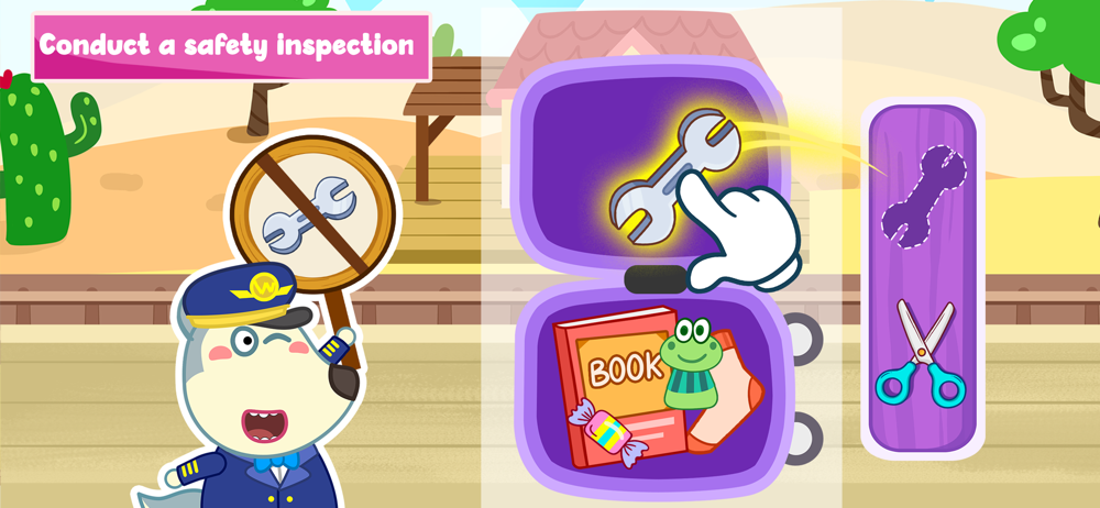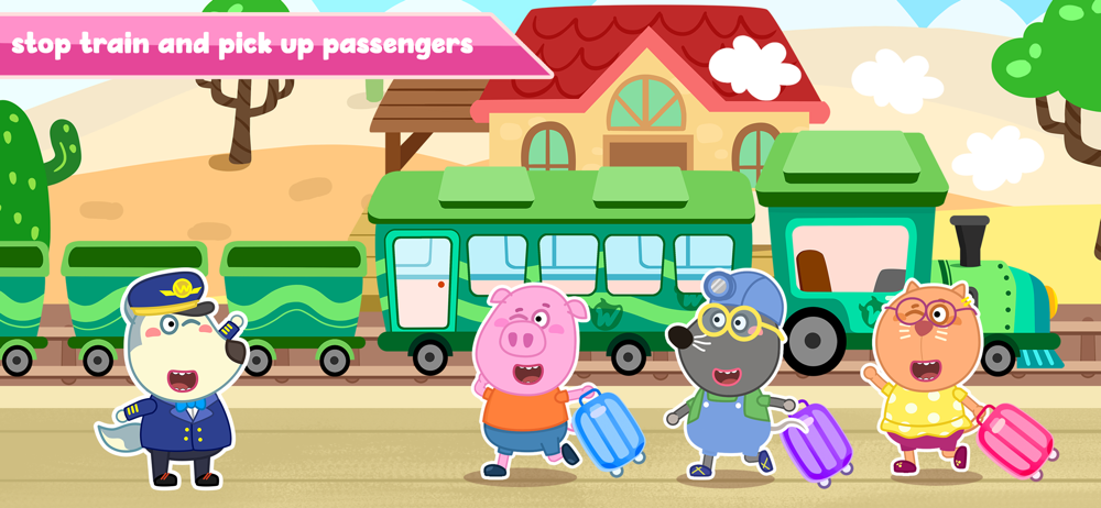 Hello little train captain. Today we have many passengers that join this train game. Make sure that you are ready for an amazing driver game with Wolfoo and friends. There are some interesting activities for kids to play and learn: check ticket and package, remove obstacles on the railway, build a train, drive the train safely, travel around the world. It's gonna be an unforgetable trip by train! Download it for free now!