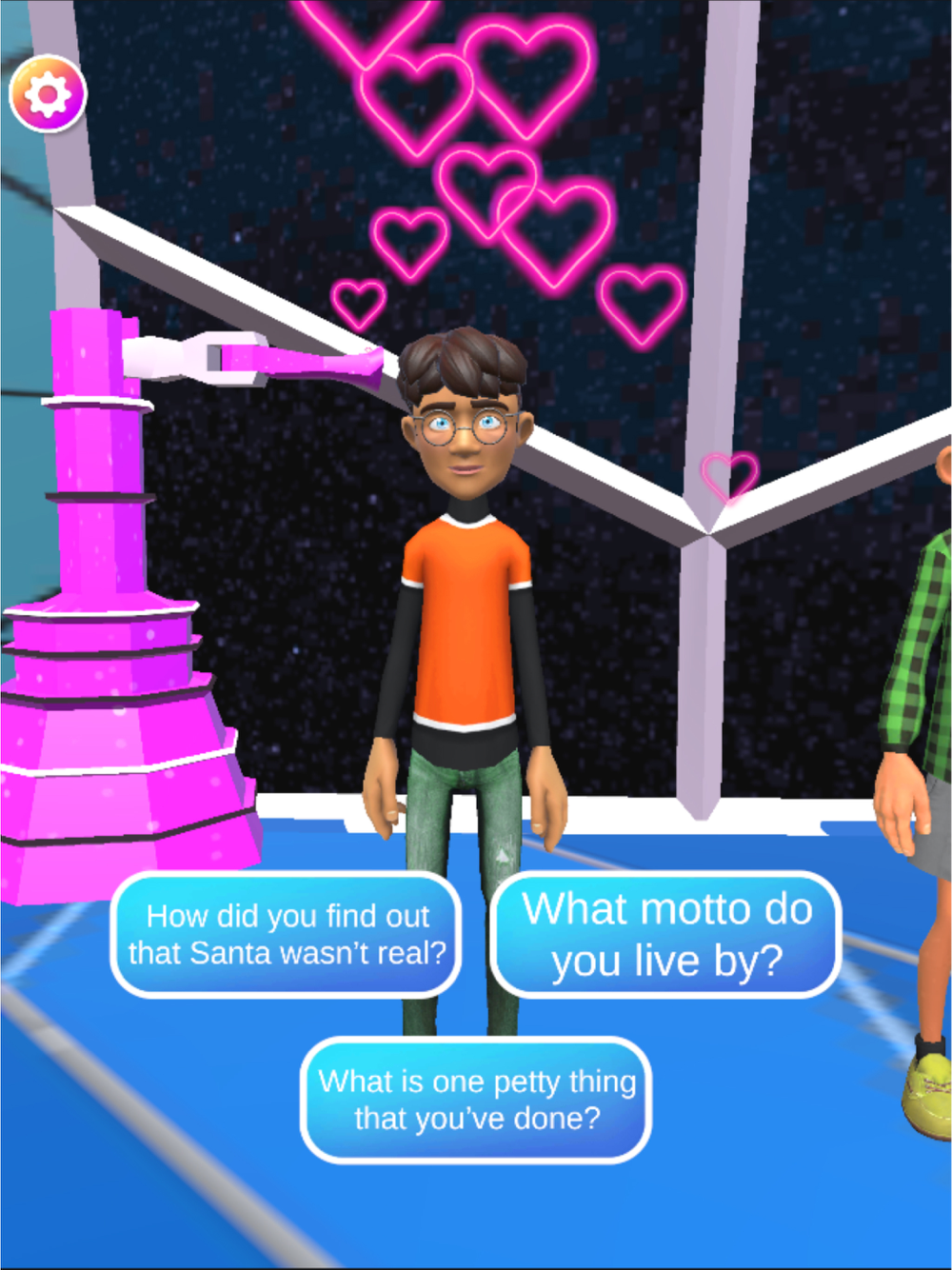 This is a dating show simulation game where we try to find the perfect match through fun and funny questions.