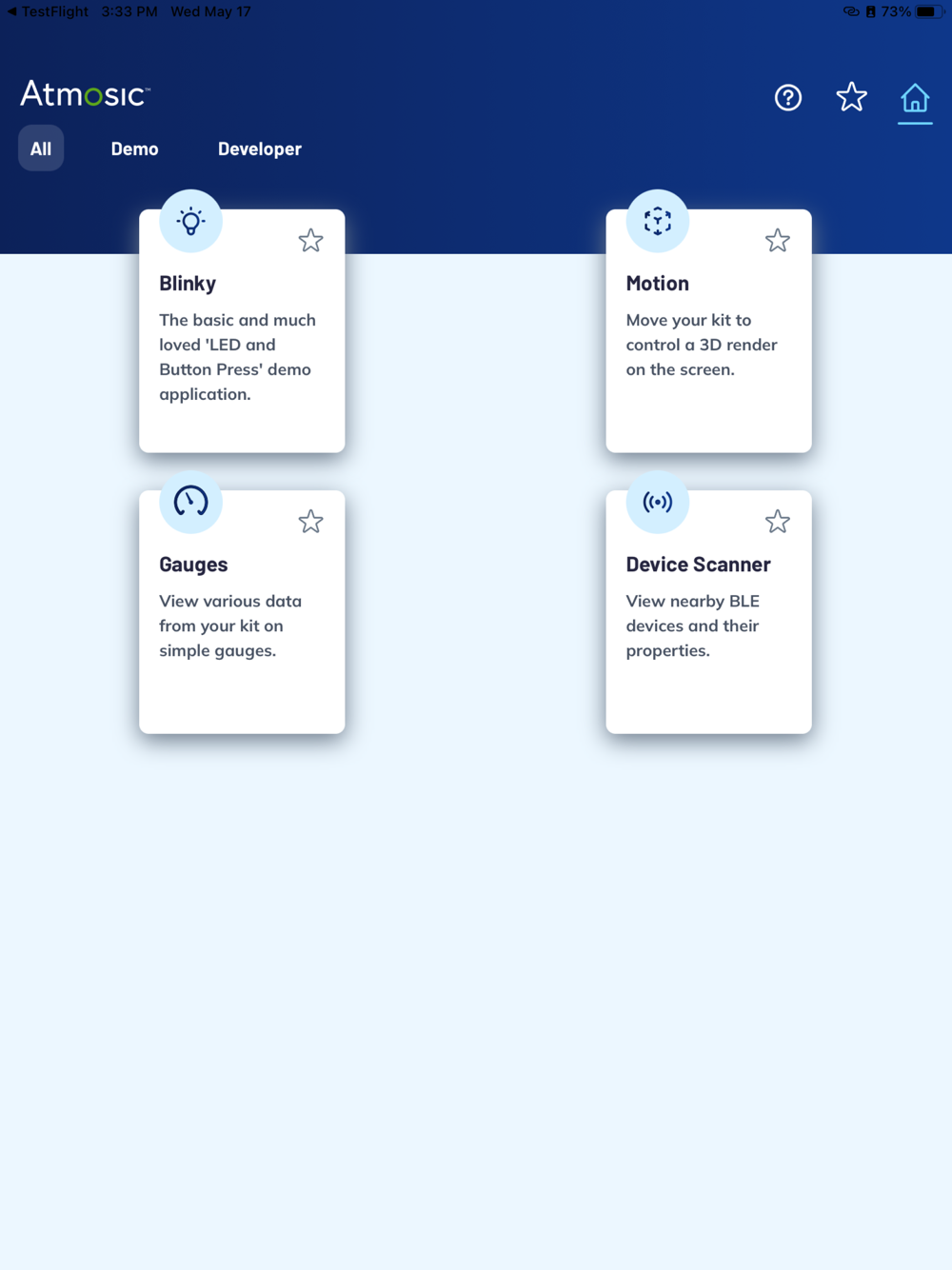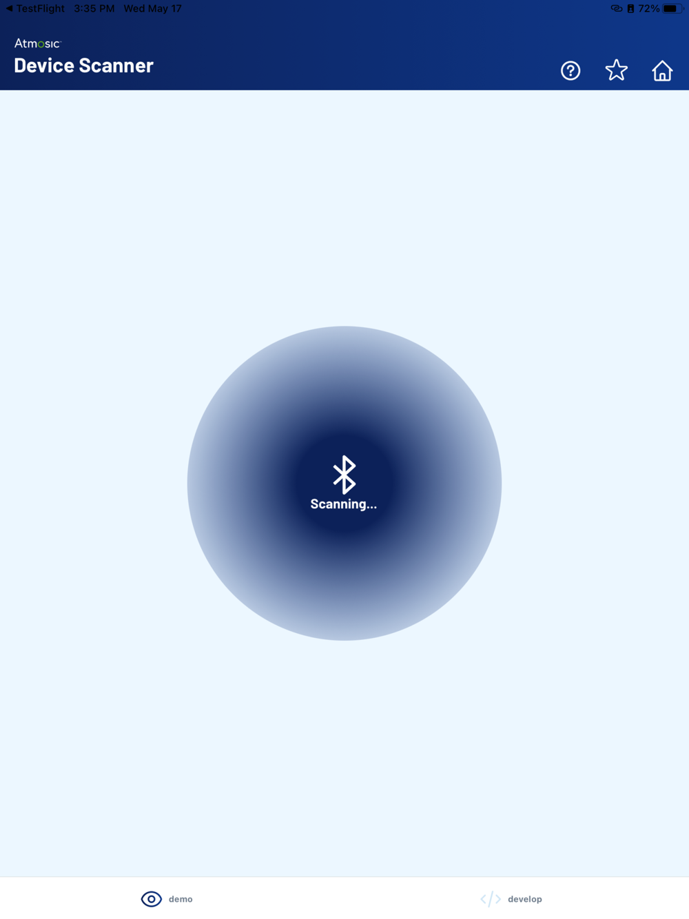 Atmosic (vih-vee-ent:) Is a mobile app designed specially for wireless developers looking to evaluate, create and troubleshoot Bluetooth(r) Low Energy (BLE) applications using the Atmosic Extreme Low-Power ATM SoCs.