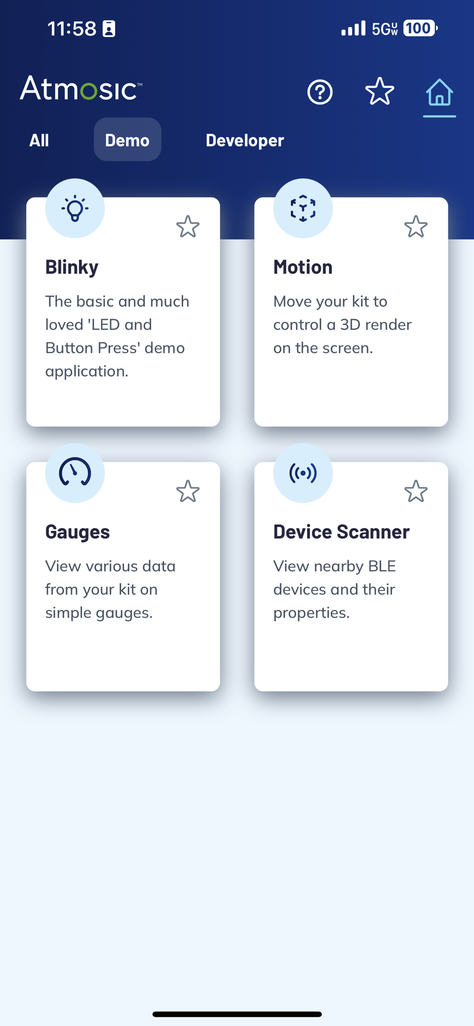The Atmosic Viviant app uses the phone or tablets BLE interface to scan, connect and interact with nearby Bluetooth hardware for both evaluation and development whilst also offering a logging feature that simplifies debugging and interaction with Atmosic support.
