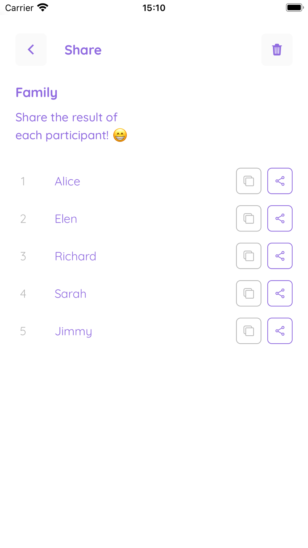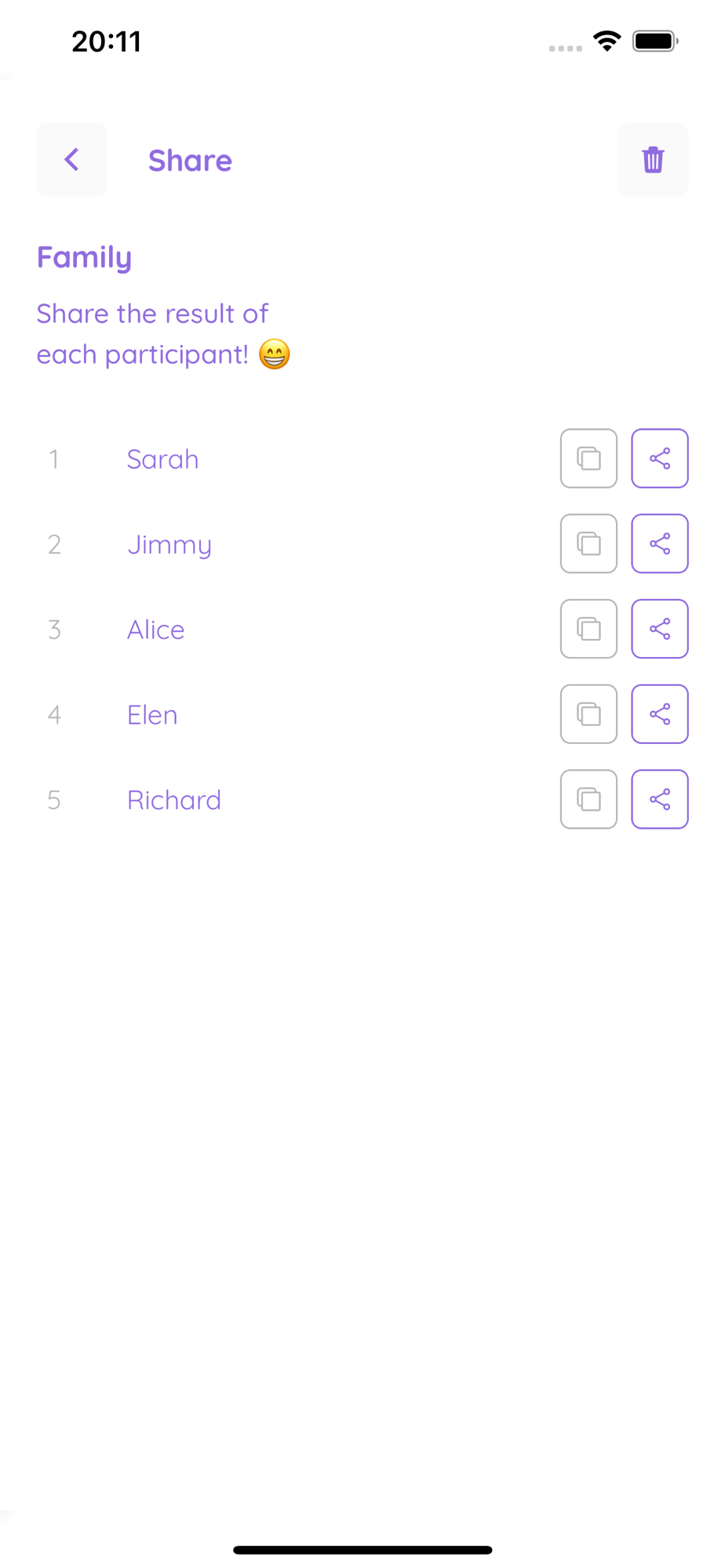 - Click the share button to send the code to the participant to find out who the secret santa is.