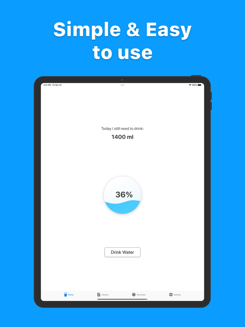 Water is vital to maintaining good health. This app makes it easy for you to drink water throughout the day.