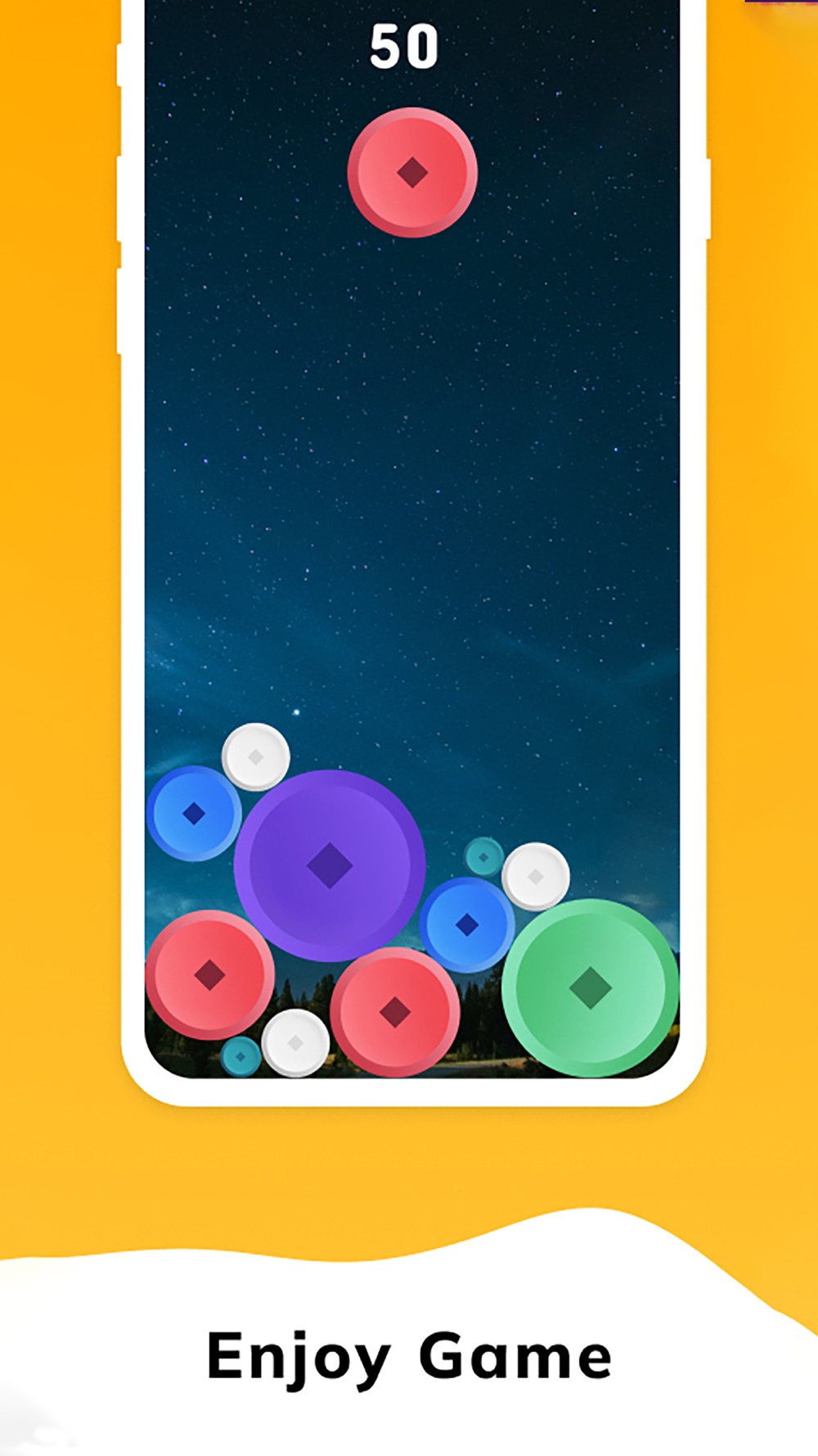 Play the game by controlling the direction that the balls fall so that two identical colors will hit each other and combine to form a larger color Ball. More points are awarded the more fusions you complete. There is a leaderboard display, and users can challenge other players worldwide.