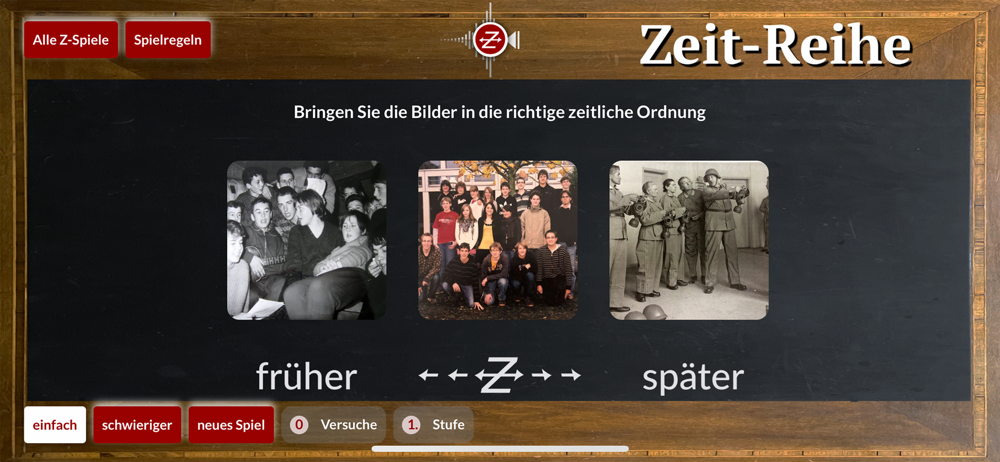 * Bei «Zeit-Reihe» müssen drei, vier oder fünf Bilder durch Ziehen chronologisch geordnet werden.