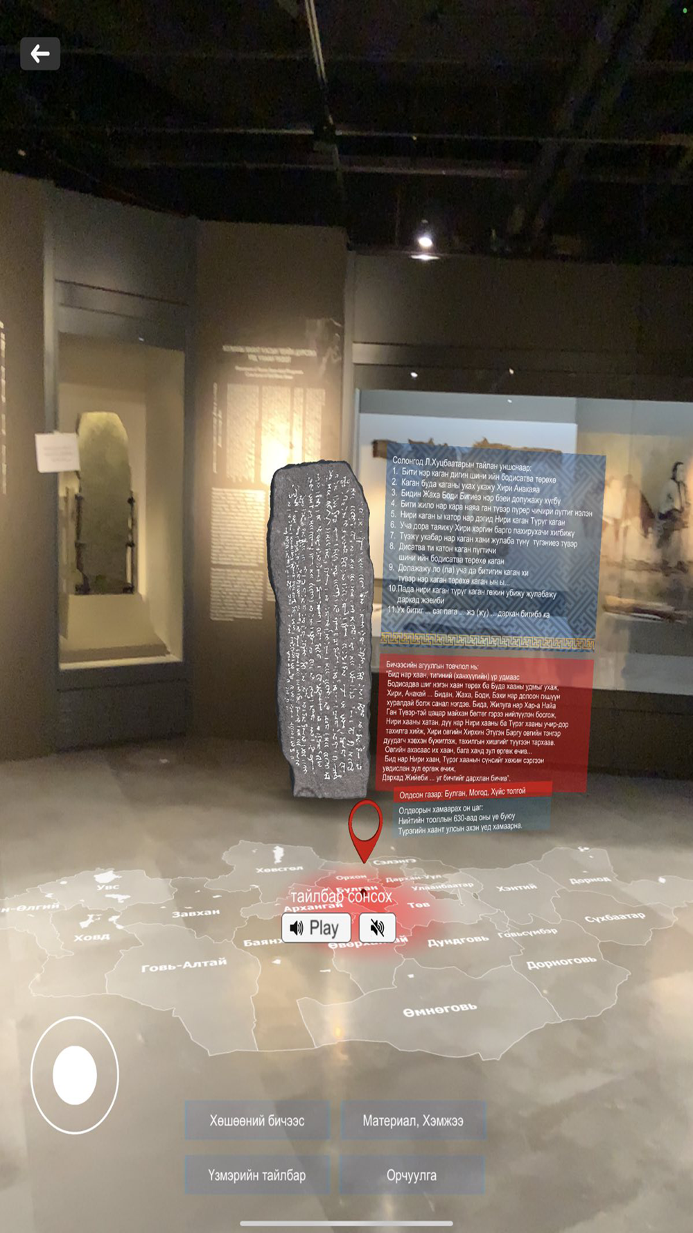 Chinggis Khaan Museum AR Application that helps to show exhibitions as augmented reality