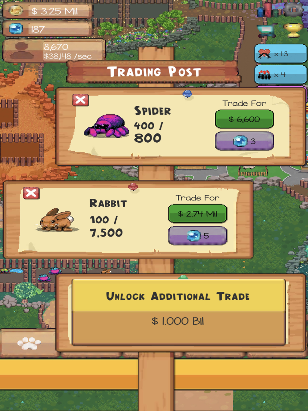 • The Rare Animals like Werewolf, Dodo, Shinigmi, Alien, Big Foot, Unicorn,…can be purchased with fossils. You earn fossils by selling your zoo and keep the rare animals even after selling your zoo.