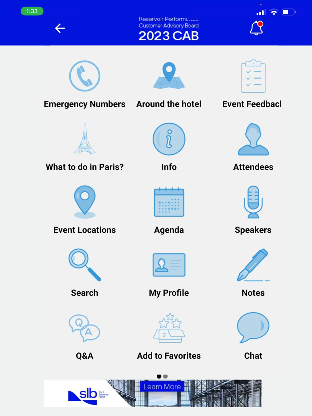 If you are attending an SLB event, this is the application you need. Here, you can find the agenda for your event, Q&A and other engagement tools and find an easy way to contact your SLB hosts.