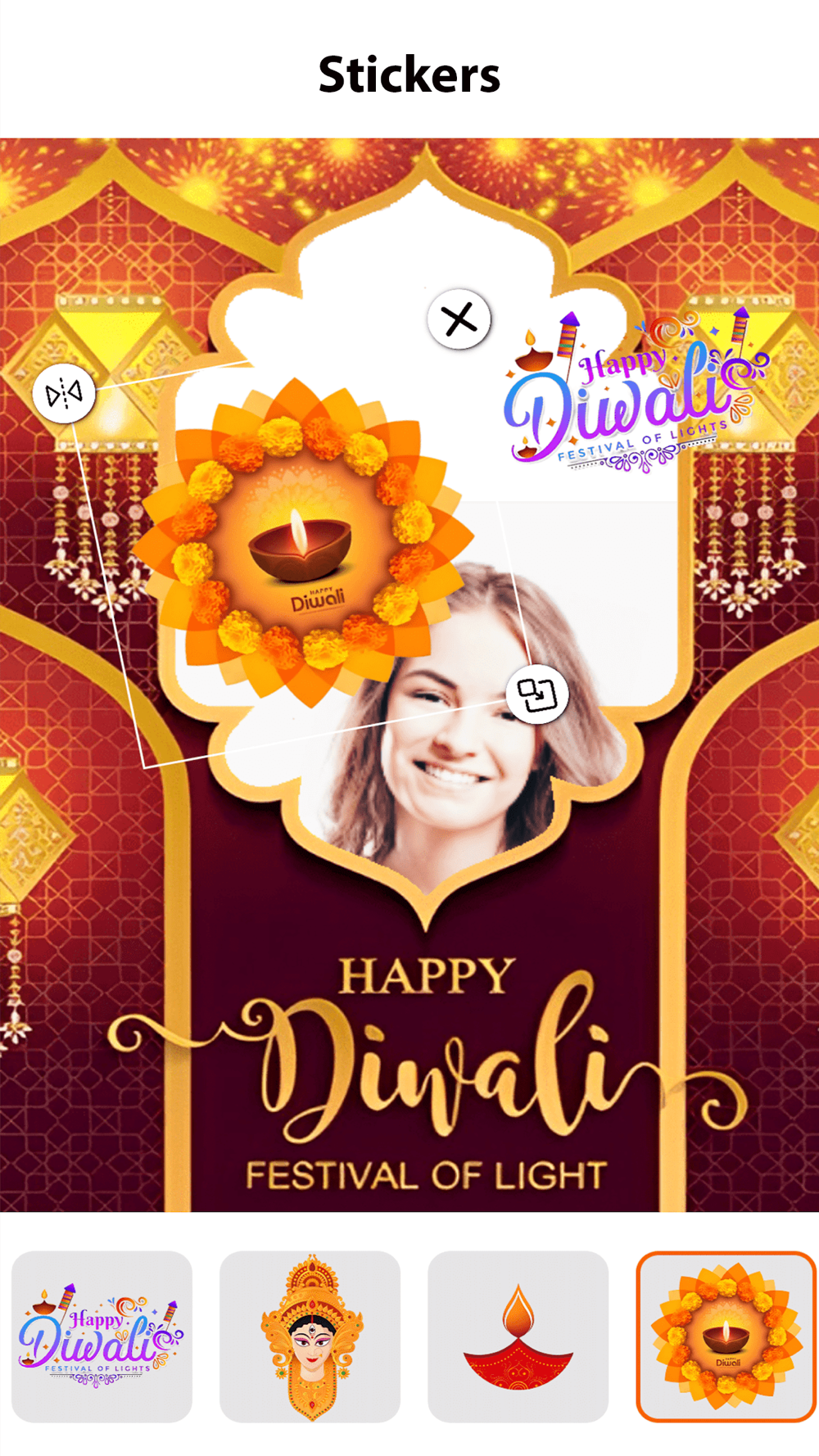 5. Done with decorating your photo save the Diwali photo frame to your gallery or share via social networks.