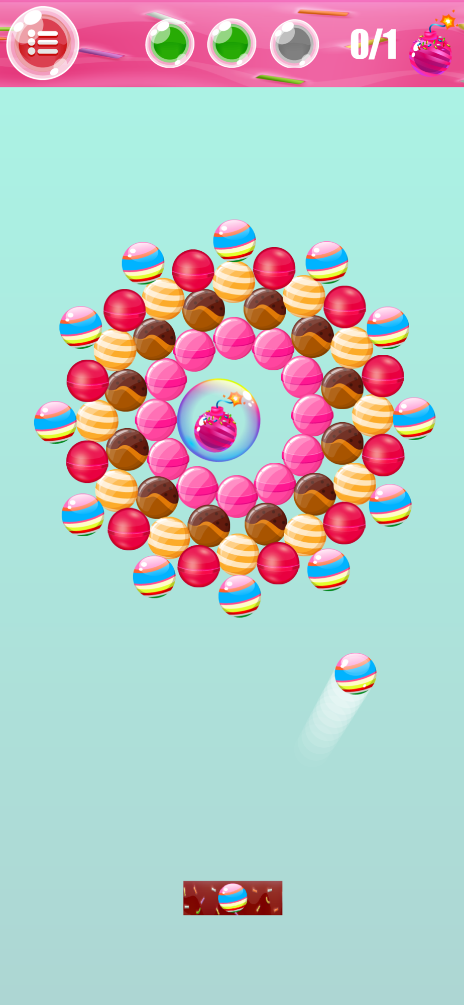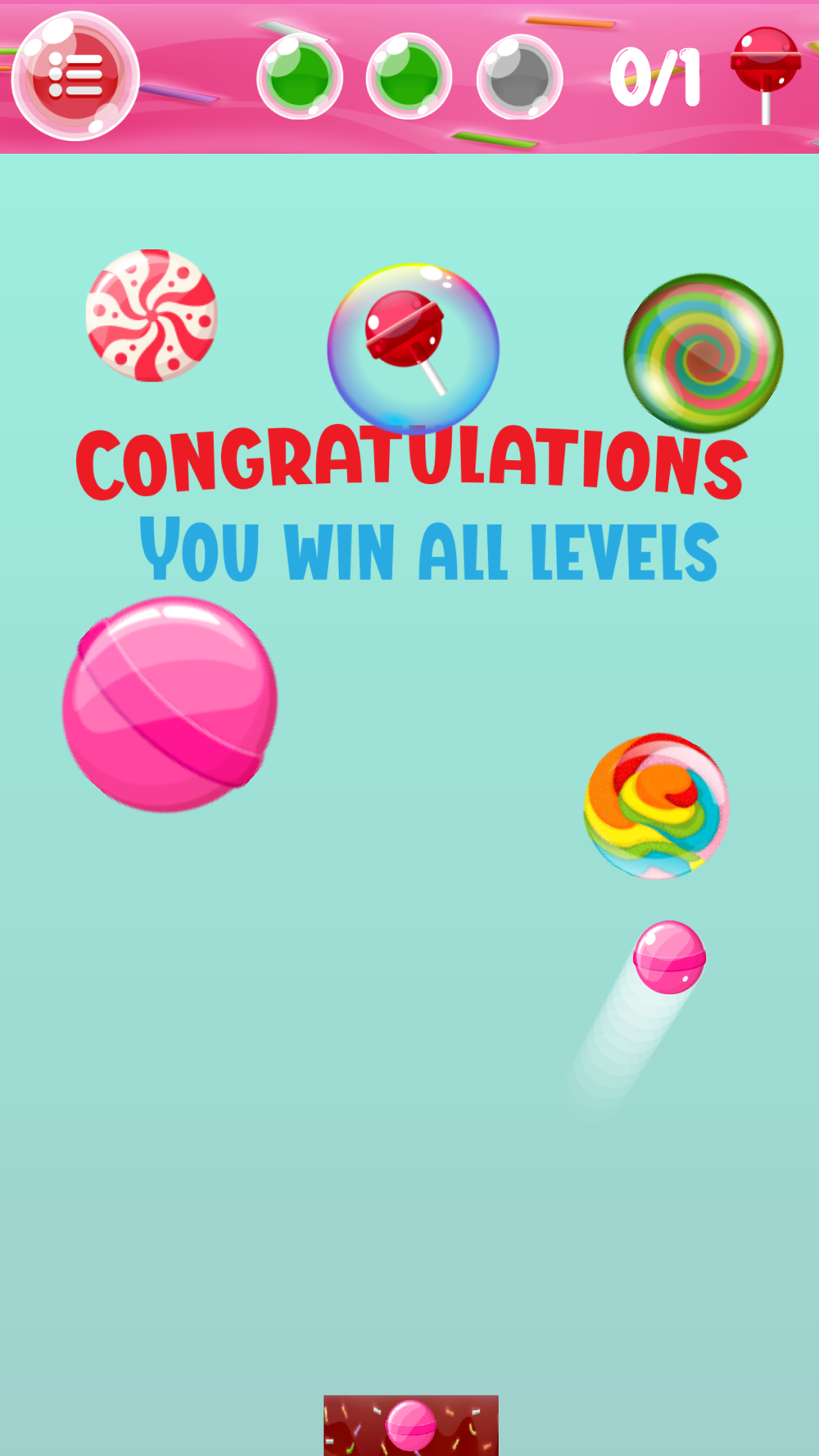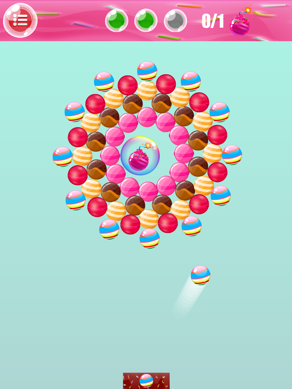 3. Let go and the candy ball will launch automatic from below and bounce when hit with the wall and candy