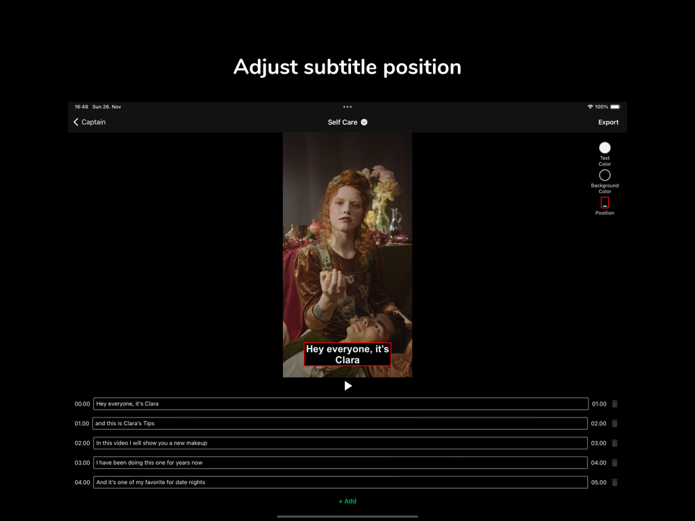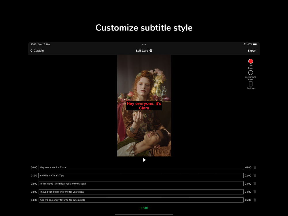 Introducing Captain, the ultimate app for creating automated subtitles for your Instagram and Tiktok videos! Captain uses advanced speech recognition technology to accurately transcribe the audio in your videos, providing you with high-quality subtitles in just a few taps.
