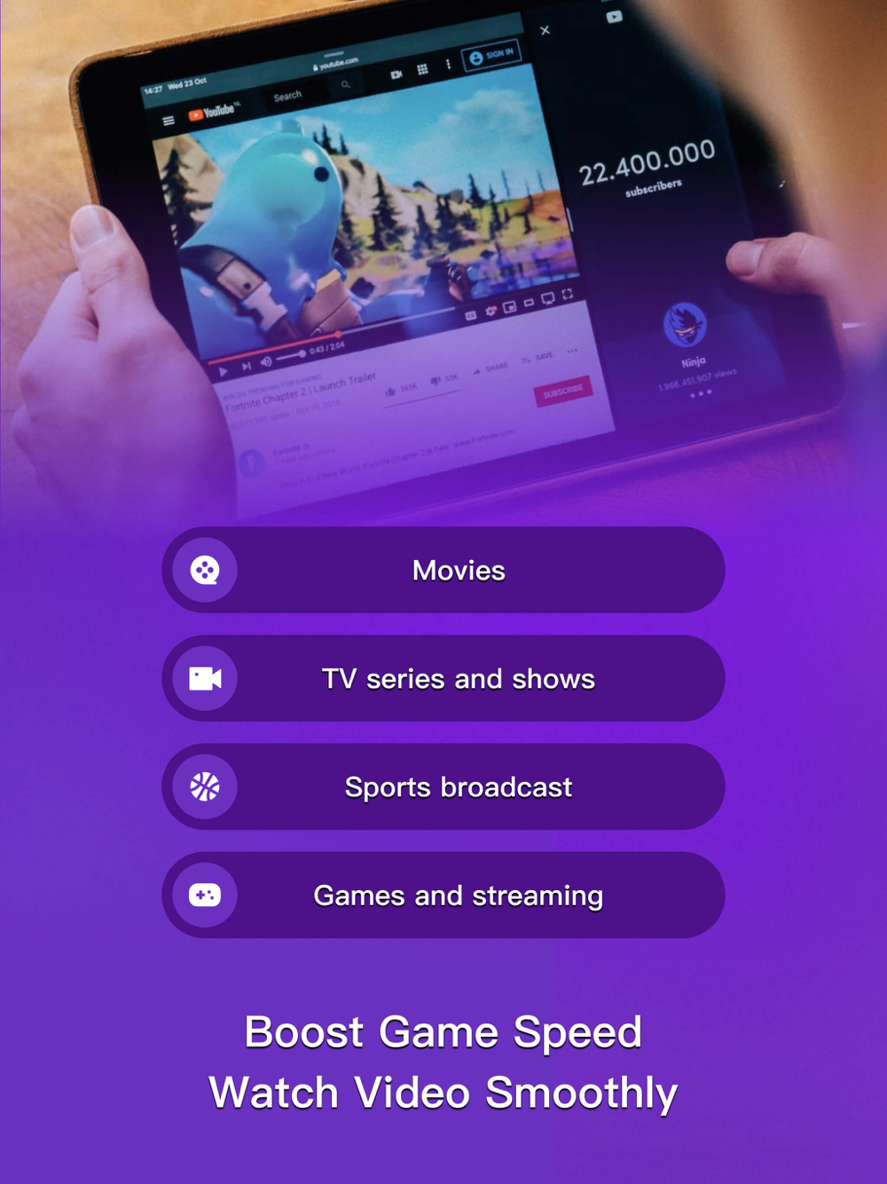 - High-speed bandwidth: Works with Wi-Fi, 5G, 4G, 3G, and all mobile data carriers, All game Speeded-Up