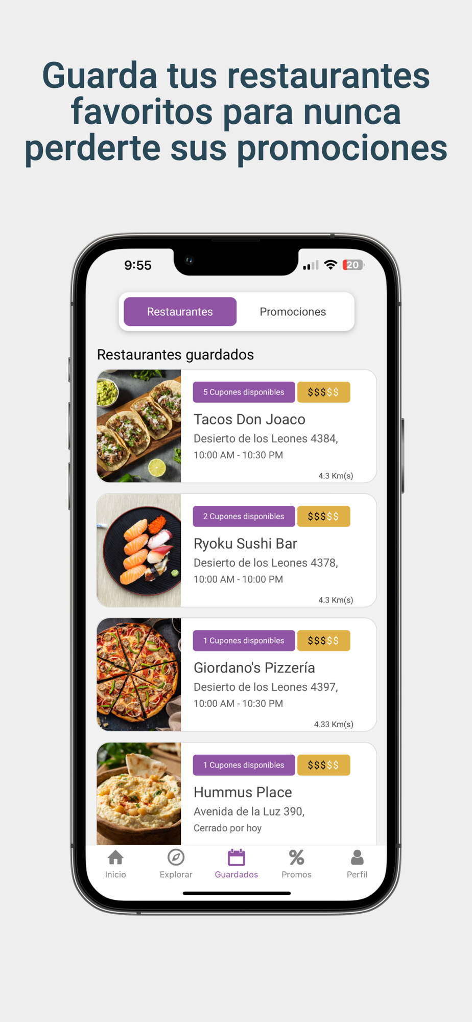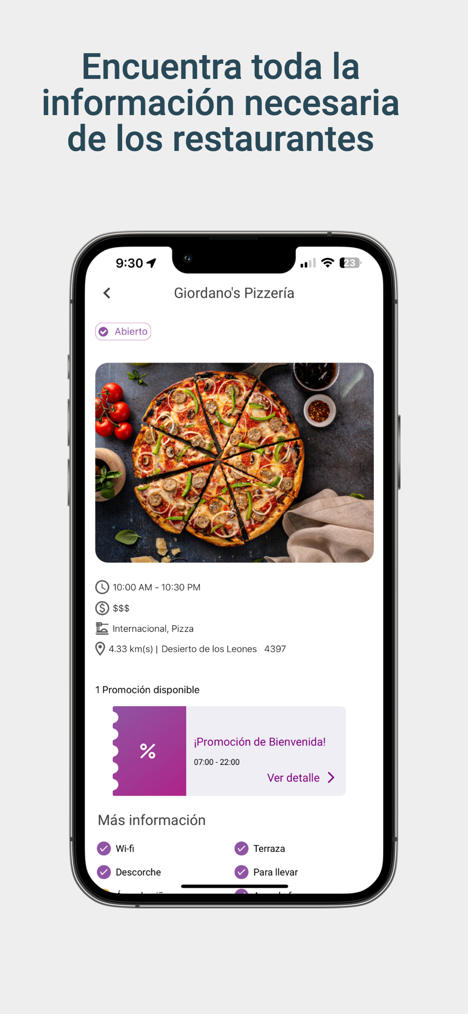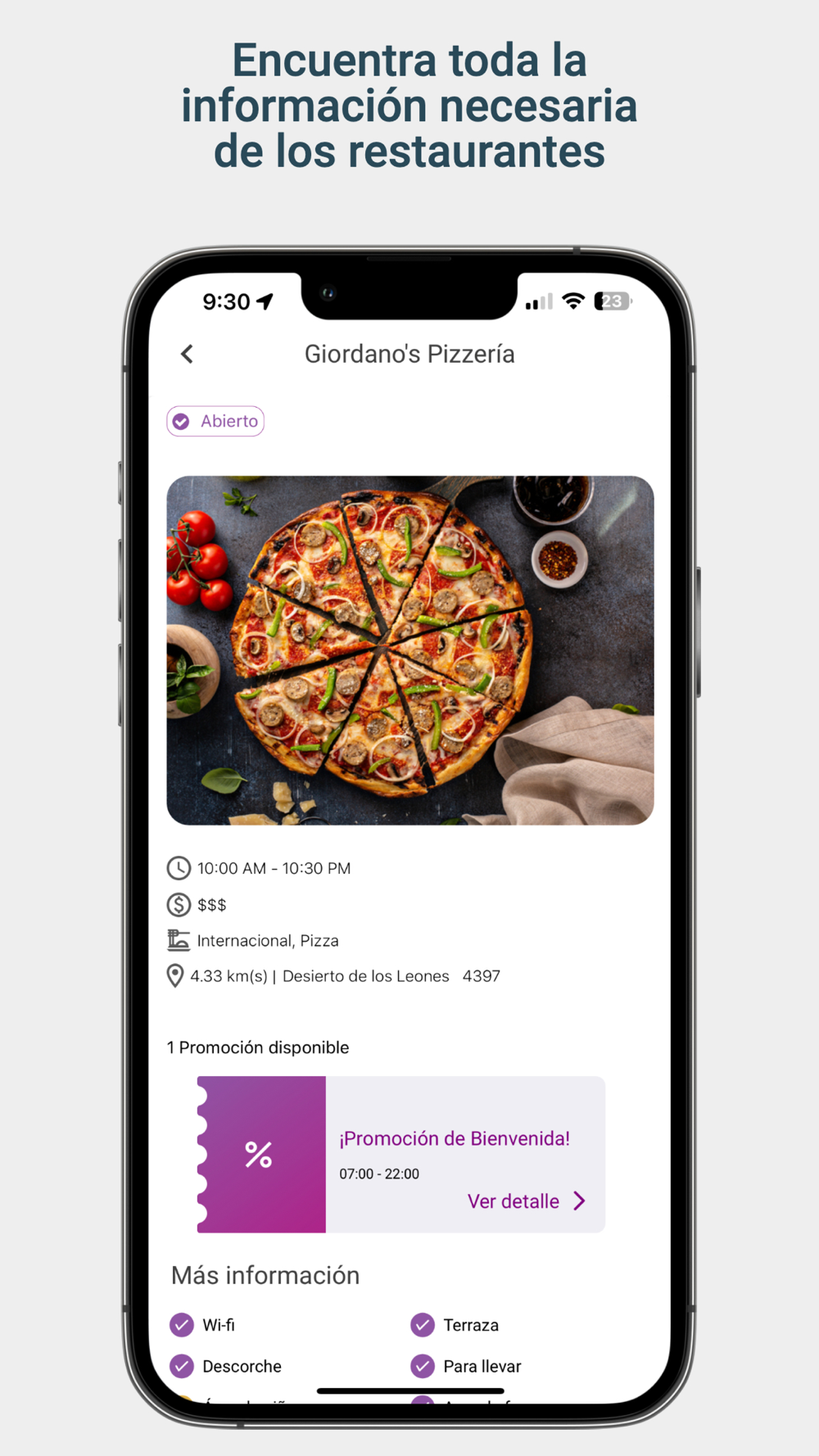 Simplemente descarga el app, ve las promociones cercanas a ti y, ¡disfruta pagando menos en tus restaurantes favoritos!