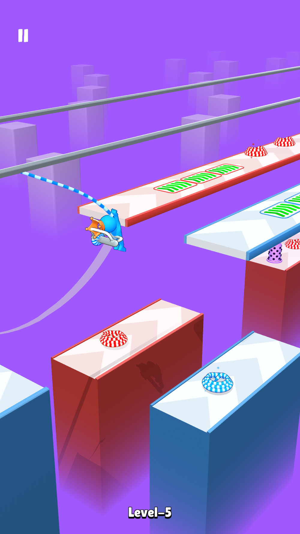 Stack the ropes on the platform, throw the rope on the pipe above, move to the opposite platform and be the first to reach the finish!