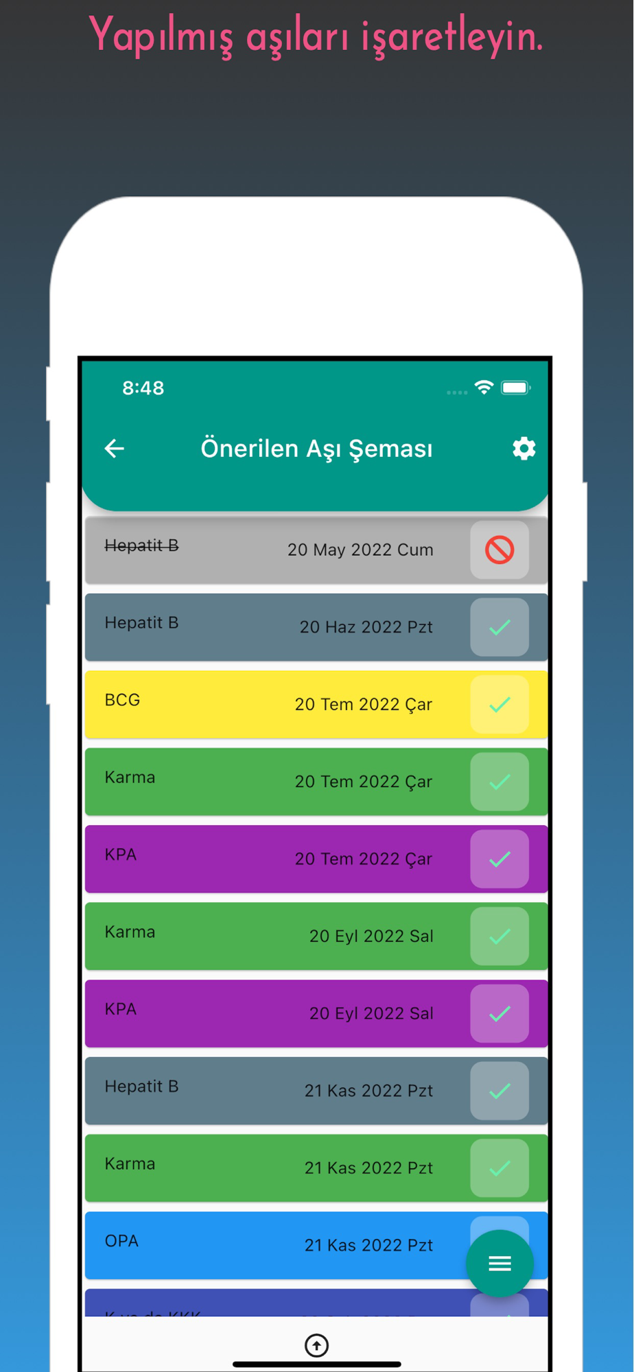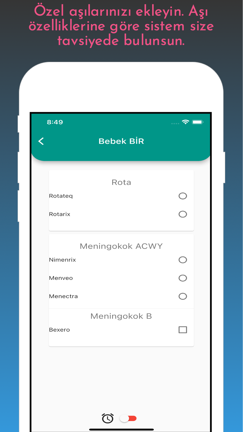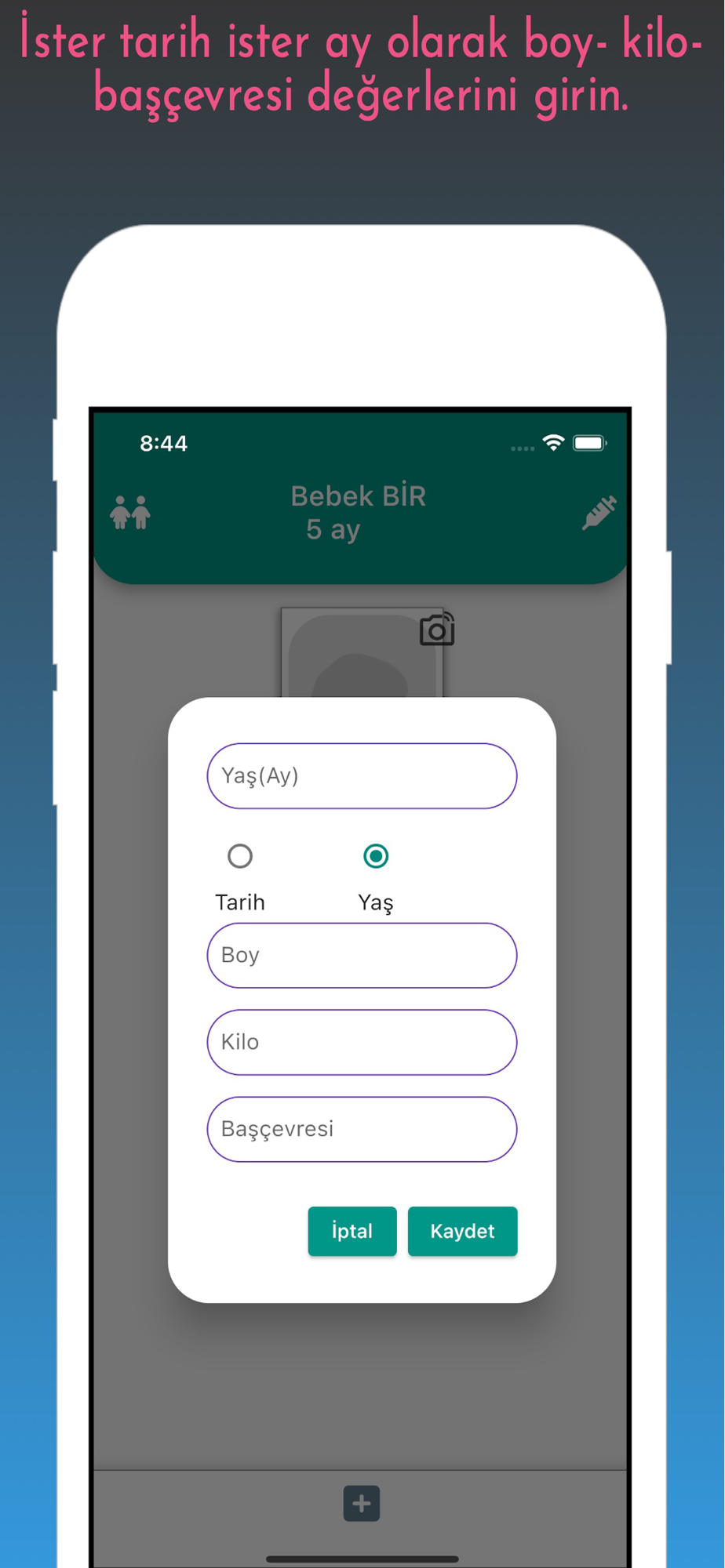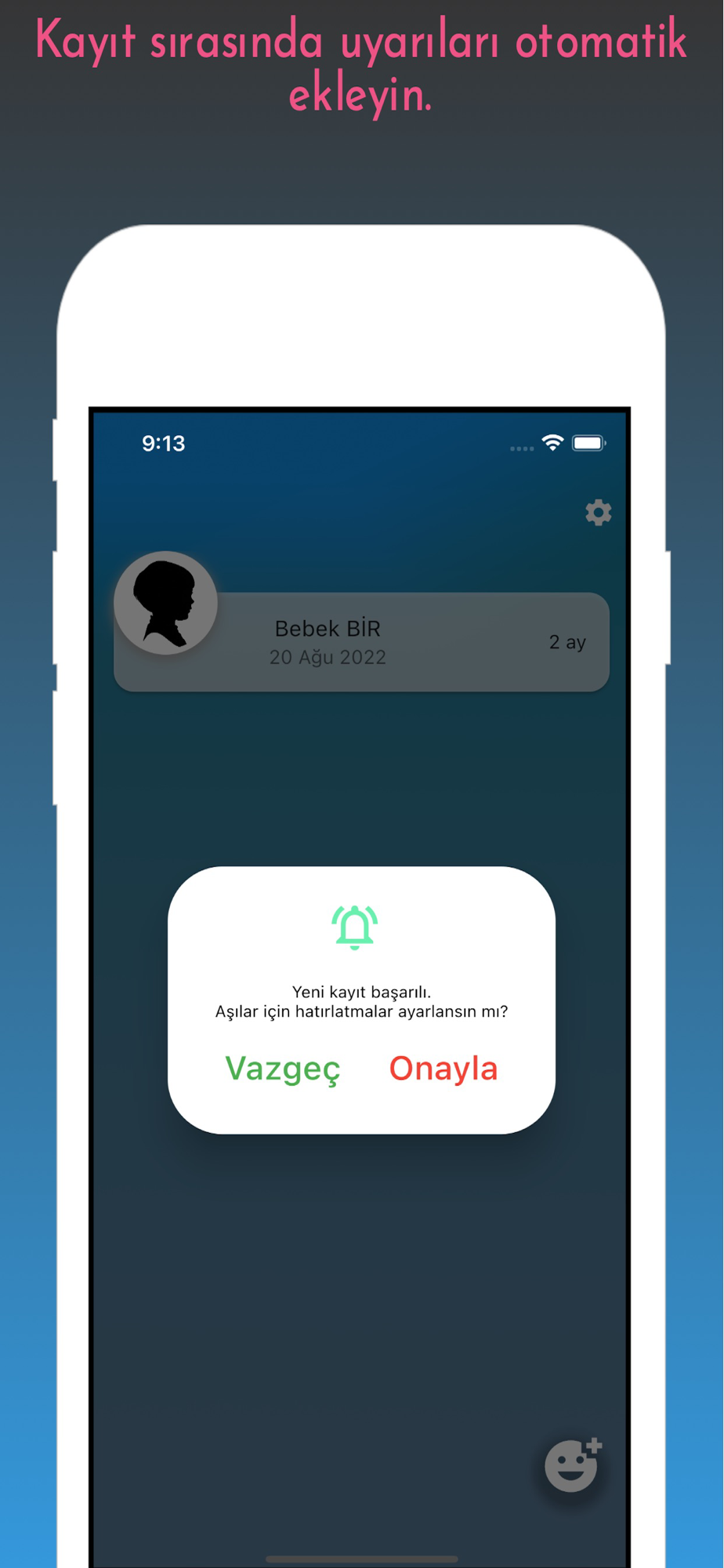 Çocuklarınızın aşılarını takip edin, uyarı ekleyin, büyümesini çizelge üzerinde takip edin ve ihtiyaç halinde yakınlarınız ve doktorunuzla paylaşın.
