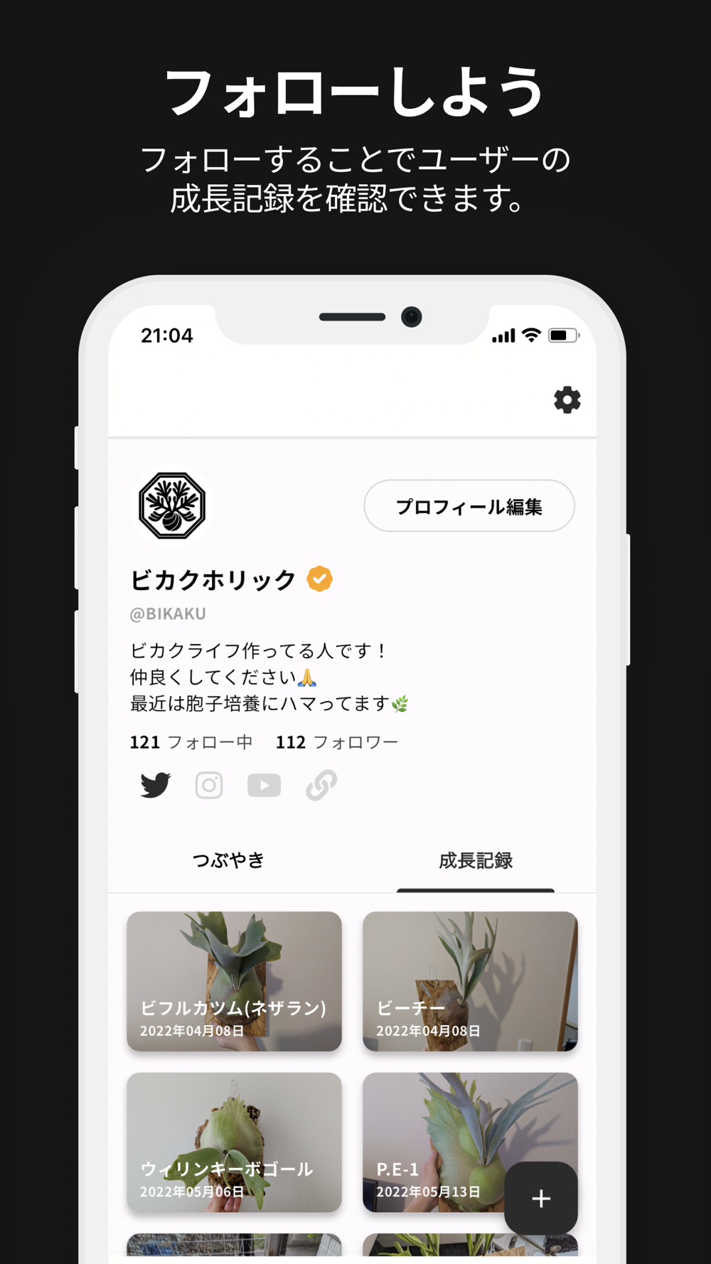 ・ビカクシダの成長記録を簡単に作成し、他のユーザーと共有できます。