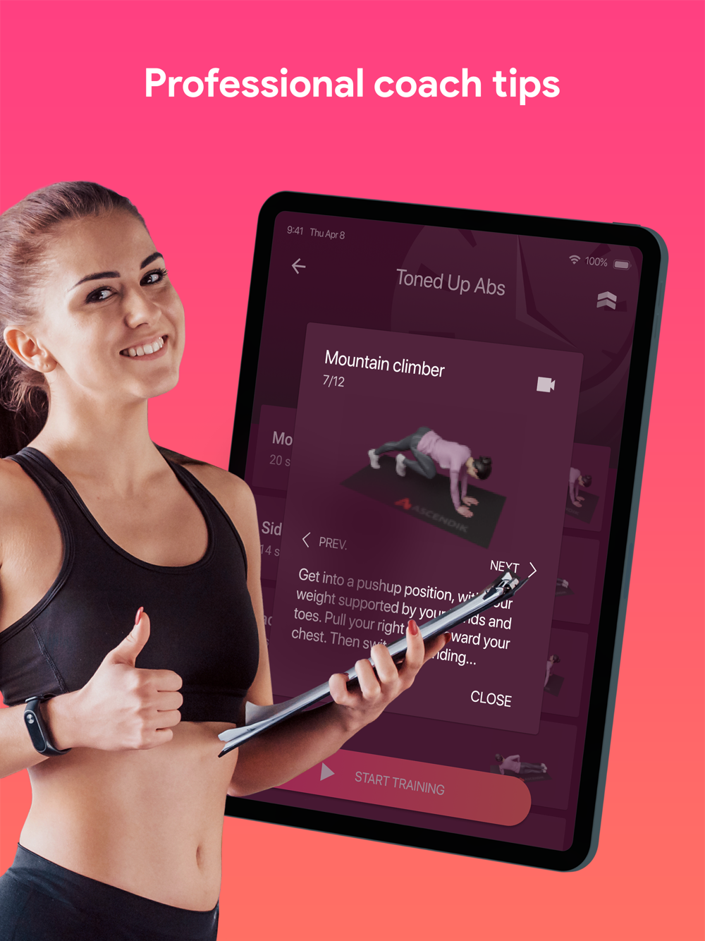 • Plenty of workouts for smaller waist and flat tummy. Carefully created ab exercises for women with up to 12-weeks long plans and adjustable difficulty. Now you can easily burn calories, work on those visible abs and core, and never lose weight loss motivation.