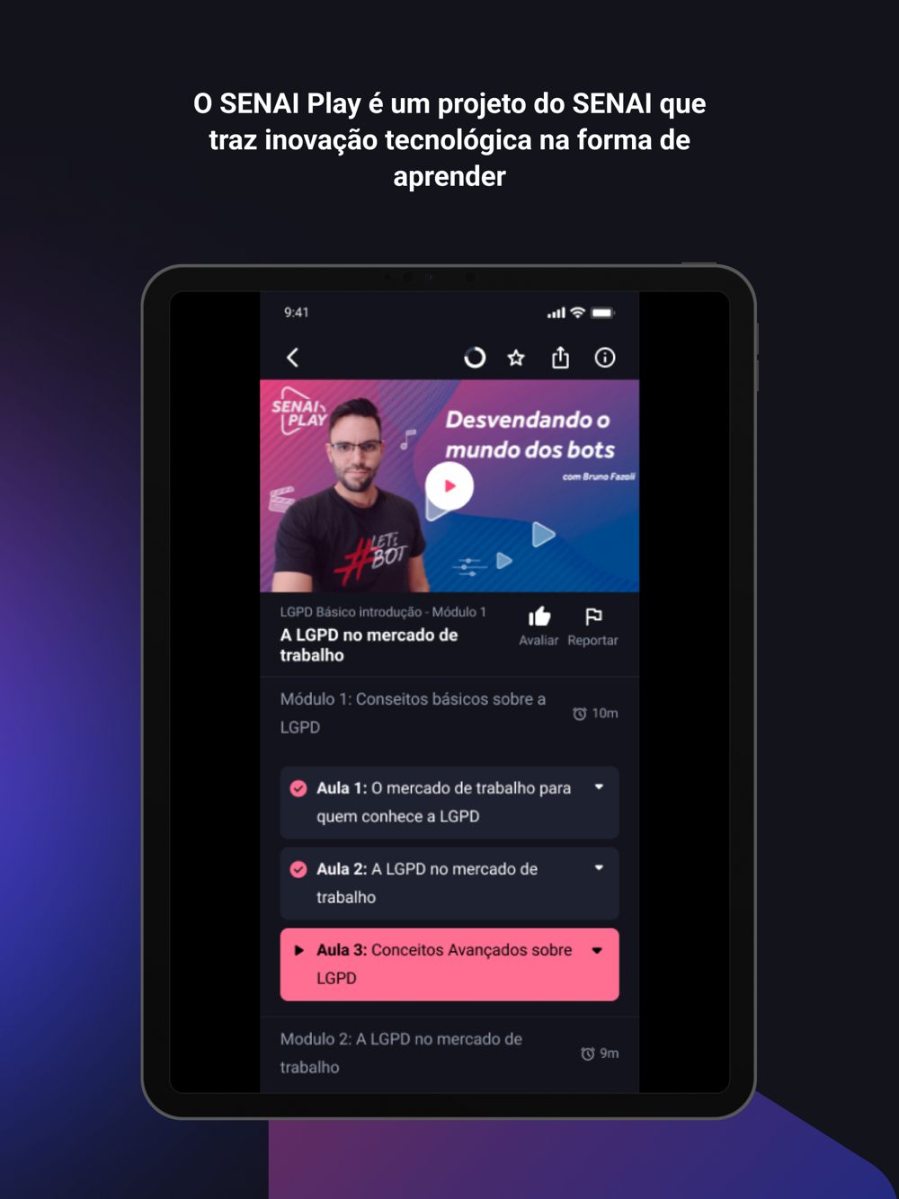 O aplicativo SENAI Play é um projeto do SENAI que traz inovação tecnológica na forma de aprender. Por meio de pílulas de conhecimento, disseminamos conteúdos por meio de Minicursos e Microcursos em formatos de vídeo, podcast e para whatsapp, voltados a diversos segmentos da área industrial.