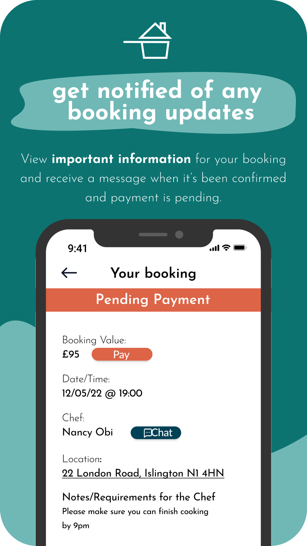 Chefiko sends notifications to keep you updated on your booking status and any other important updates.