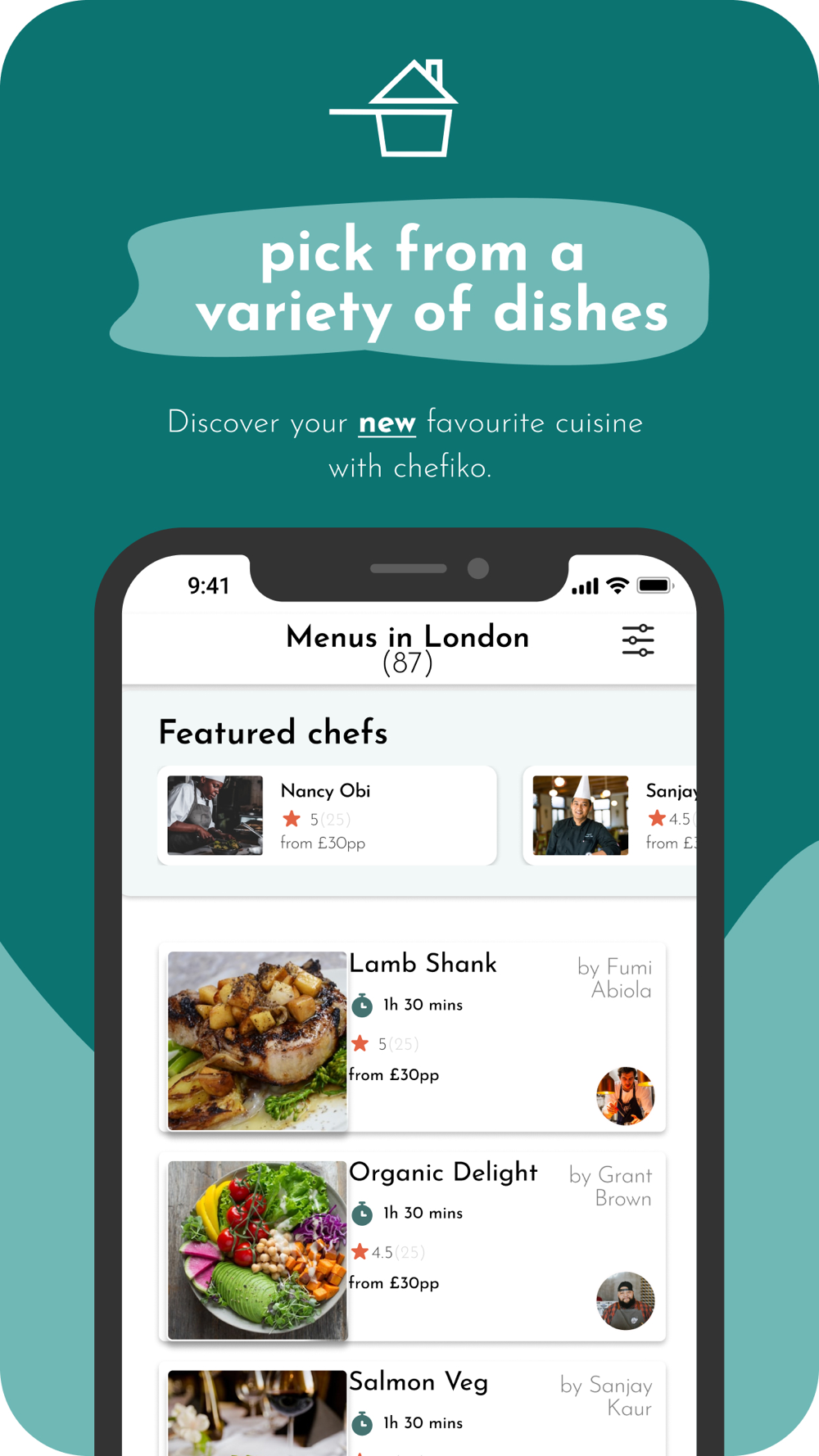 Once agreed upon and accepted by the chef, chefiko allows you to pay securely through the app and track your payment history.