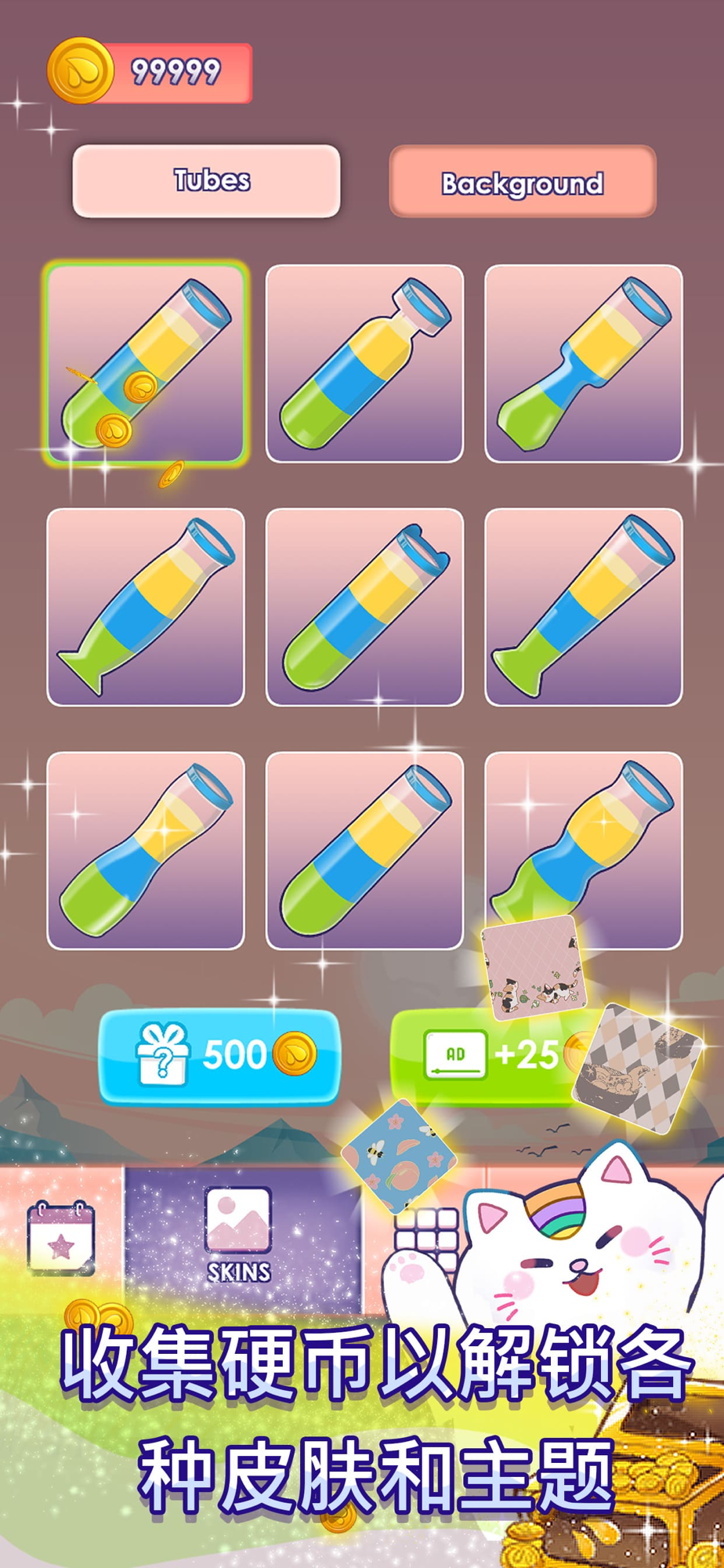 这个色彩缤纷的游戏看起来很简单,但也很有挑战性。你达到的水平越高,它就越难,因为有更多的管子来排列颜色。