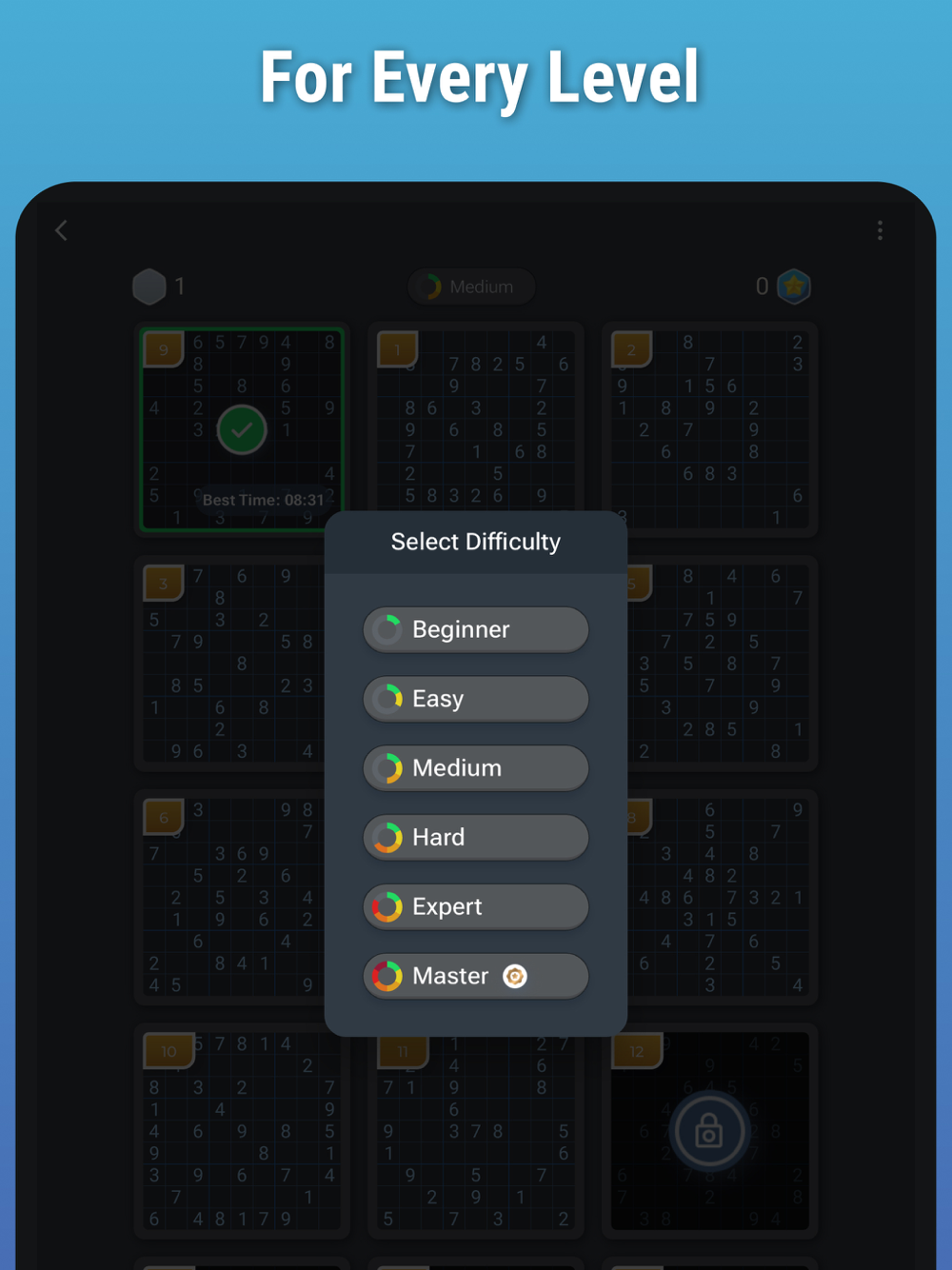 The puzzles are beautifully handcrafted and divided into 6 playing levels from Beginner to Master.
