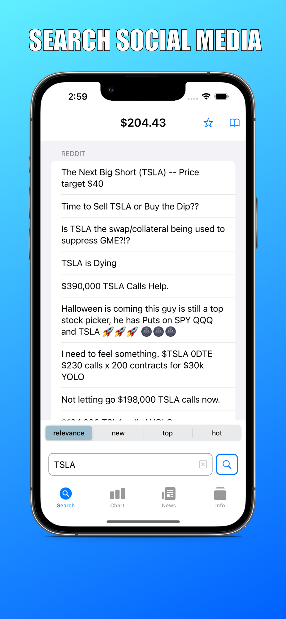 Search social media, view charts and news - all in one app!