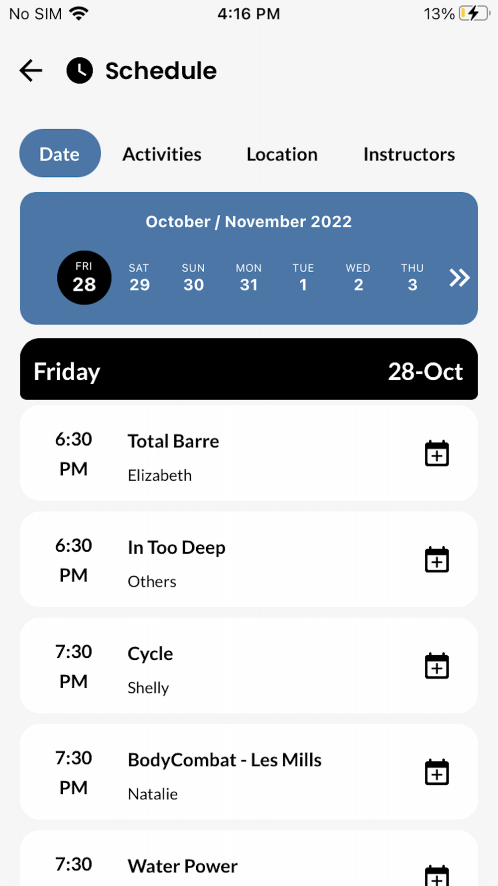 - Add classes to your calendar