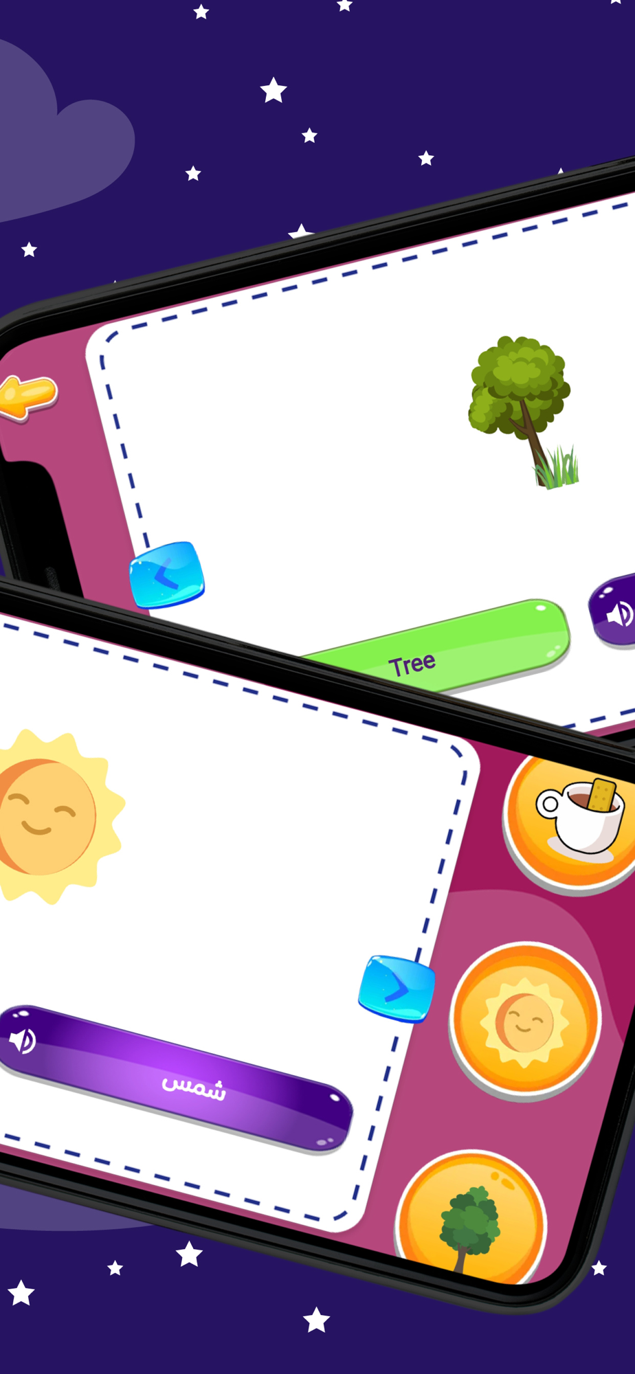 Explore the different everyday words for both languages Arabic and English, this app is extremely beneficial for first-time Arabic or English learners. With eye-catching animations and amazing sounds.