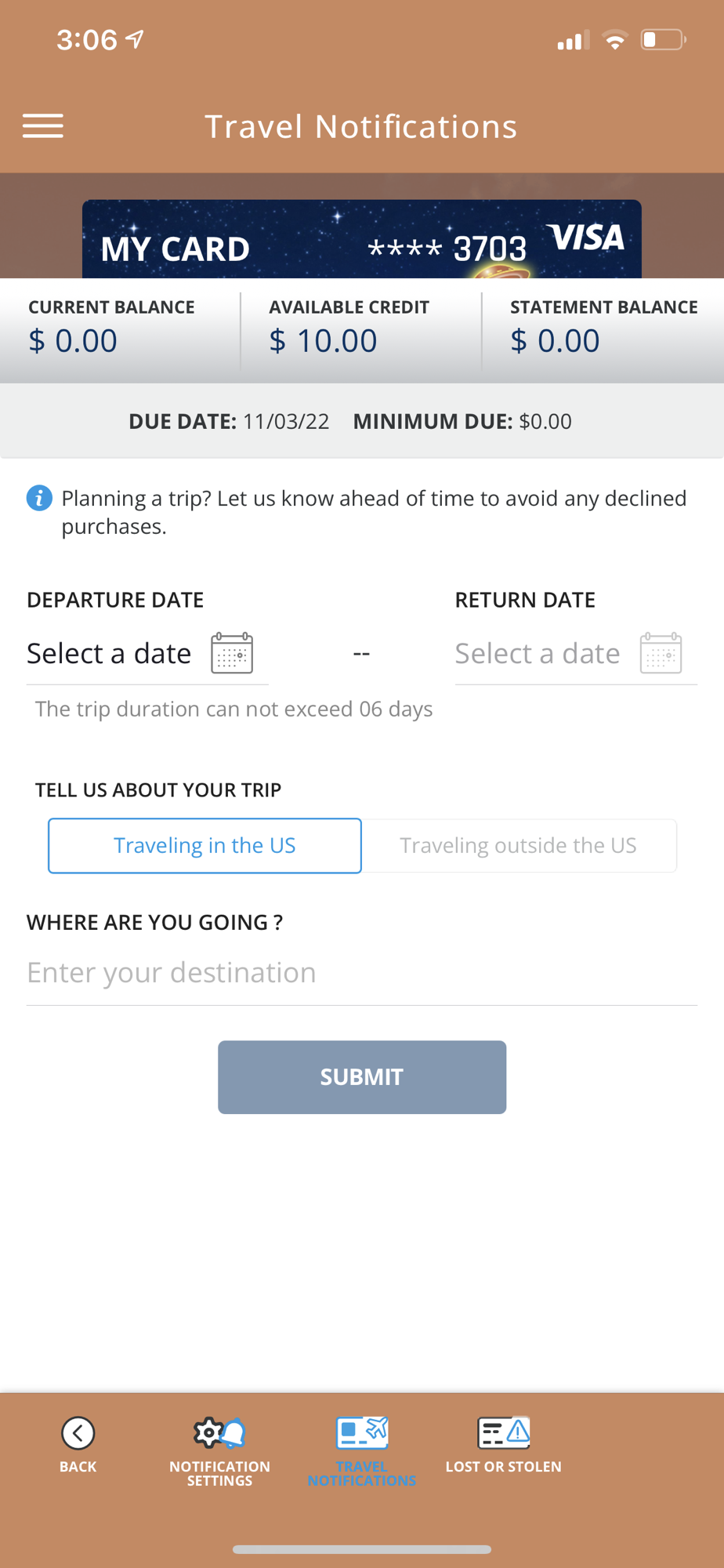 • Set travel notifications.