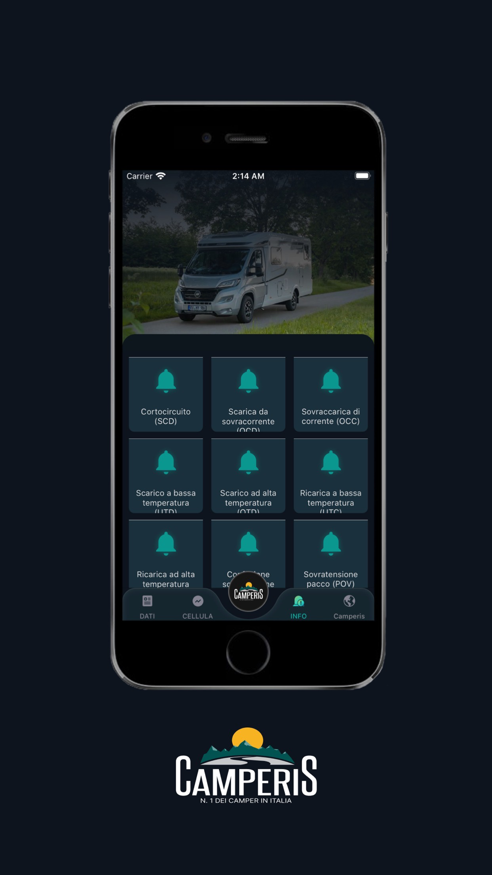 Il sistema di gestione intelligente della batteria Camperis Energy e l'equalizzatore attivo sono collegati tramite Bluetooth per monitorare lo stato della batteria, raccogliere, memorizzare ed elaborare le informazioni durante il funzionamento della batteria in tempo reale, scambiare informazioni con dispositivi esterni, risolvere i problemi chiave della sicurezza, facilità d'uso e durata del sistema di batterie al litio, estendere la durata della batteria e migliorare la stabilità della batteria dopo il raggruppamento.