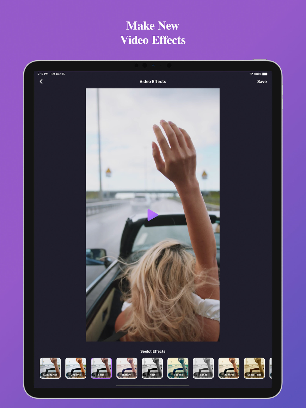 Clip Merge: Video Editor app filters videos using multiple effects.
