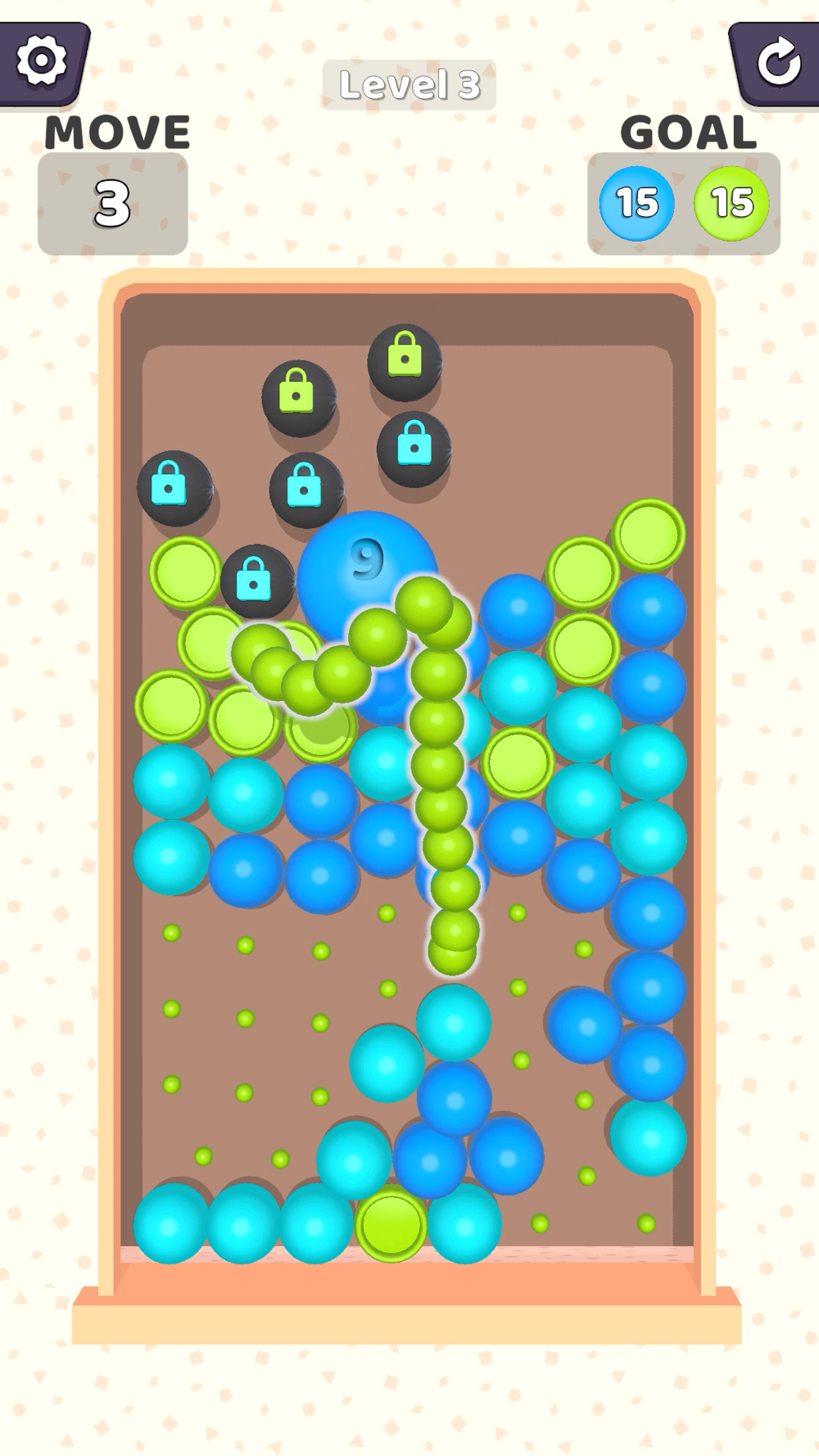 Select colored balls and merge them. Complete goals.