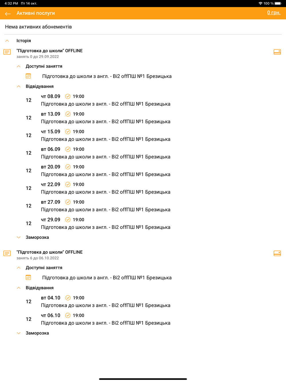 - слідкувати за своїми абонементами, відвідуваннями і платежами;
