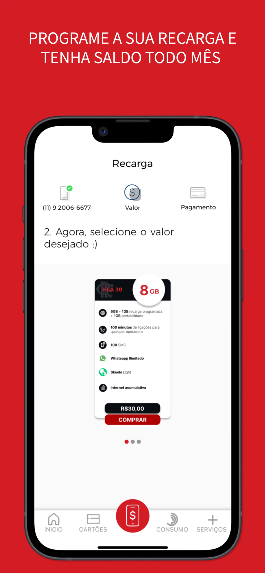 O Aplicativo é para você, usuário do FlaChip acessar os serviços de recarga, consulta de saldo (voz, internet e de recarga) e outros, de forma rápida, simples e na hora que quiser.