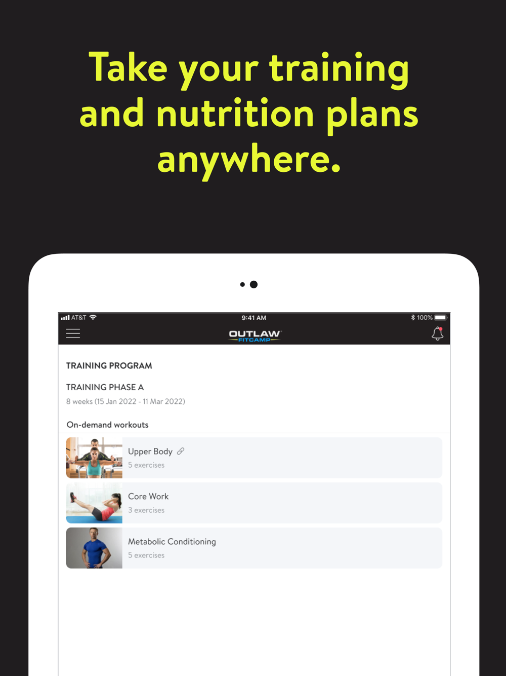 With the Outlaw FitCamp Performance App, you will have access to workout programs designed specifically to help you reach your fitness and health goals! You can follow & track your workouts, your nutrition, your lifestyle habits, measurements and results–all with the help of your coach.