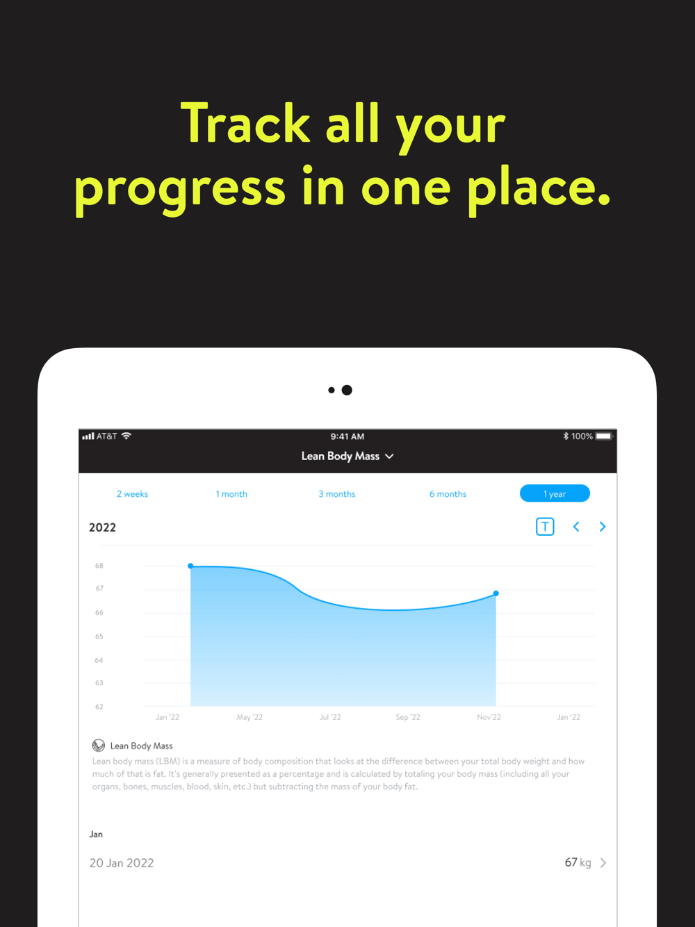 - Connect to other wearable devices and apps like the Apple Health App, Garmin, Fitbit, MyFitnessPal, and Withings devices to track workouts, sleep, nutrition, and body stats and composition