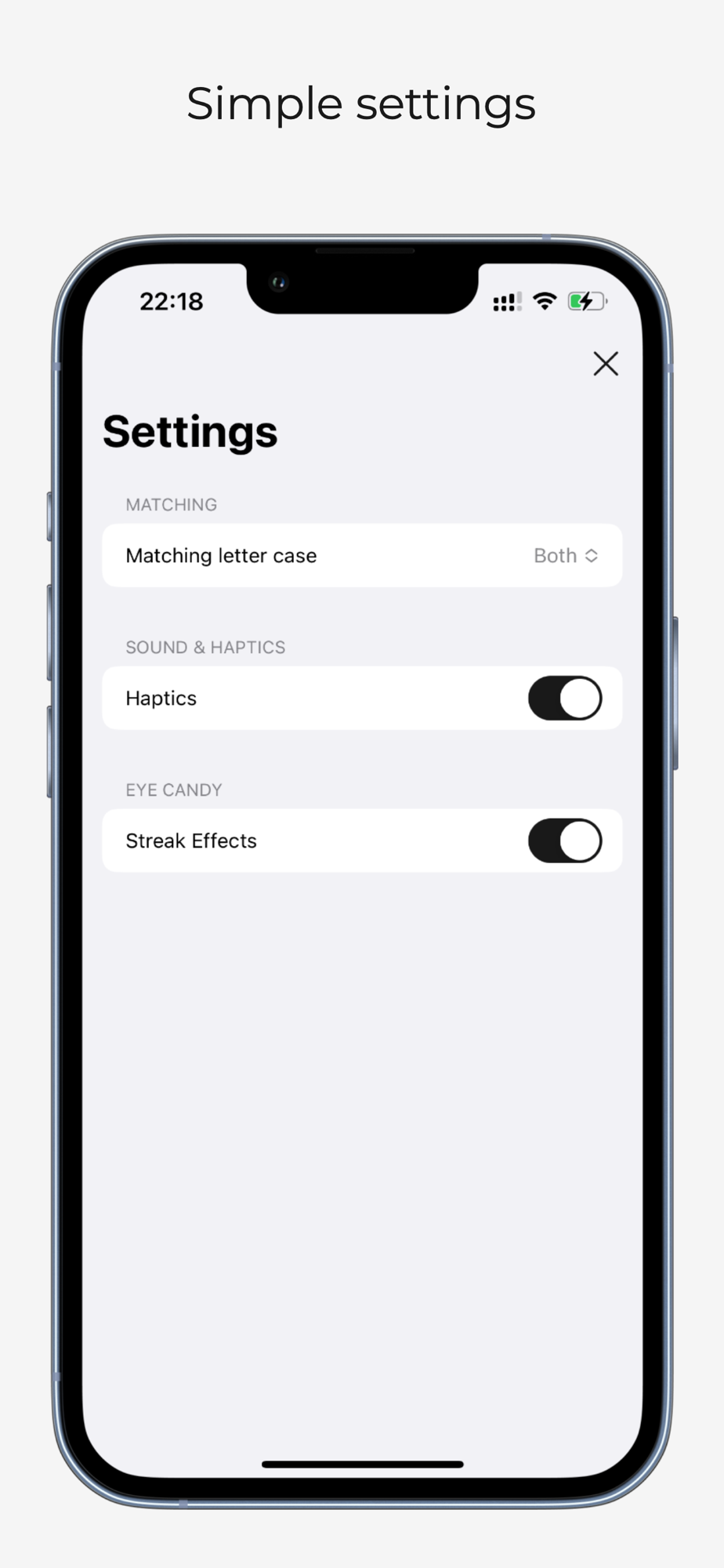 With Simple Greek you can practice character memorization with ease. The main goal of Simple Greek is to provide an easy and distraction-free learning experience!