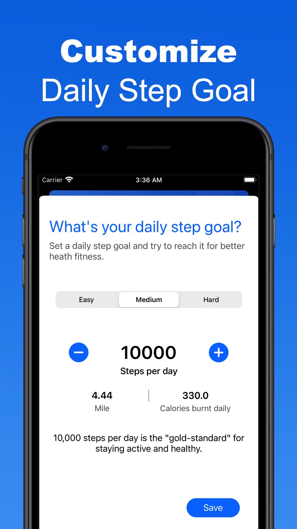 We integrate with the health app (HealthKit) to read and track your steps data and show them in a beautiful way.