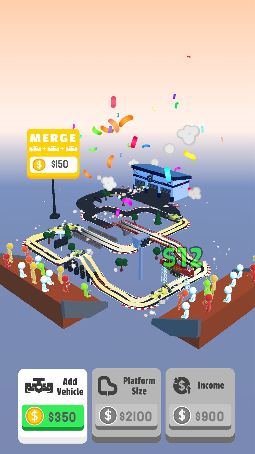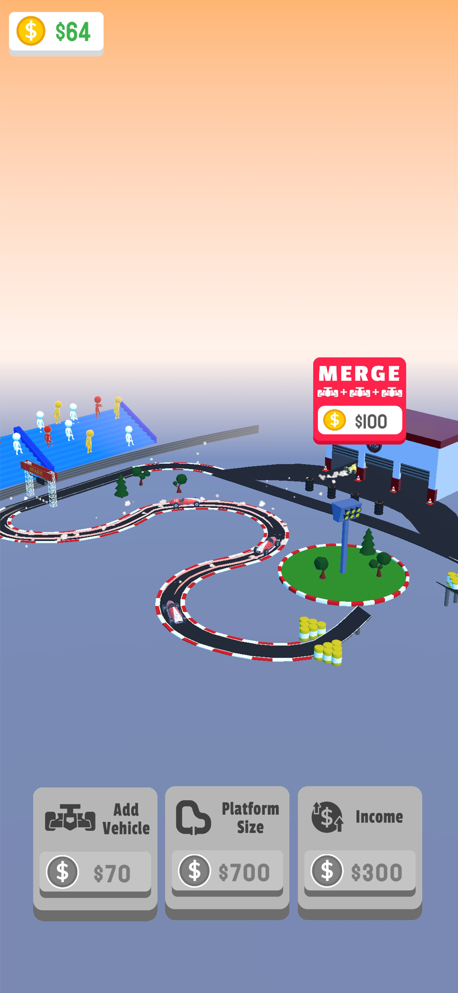 Merge three cars of the same level and get a better car at the pitstop. Remember, advanced tools bring more profit.