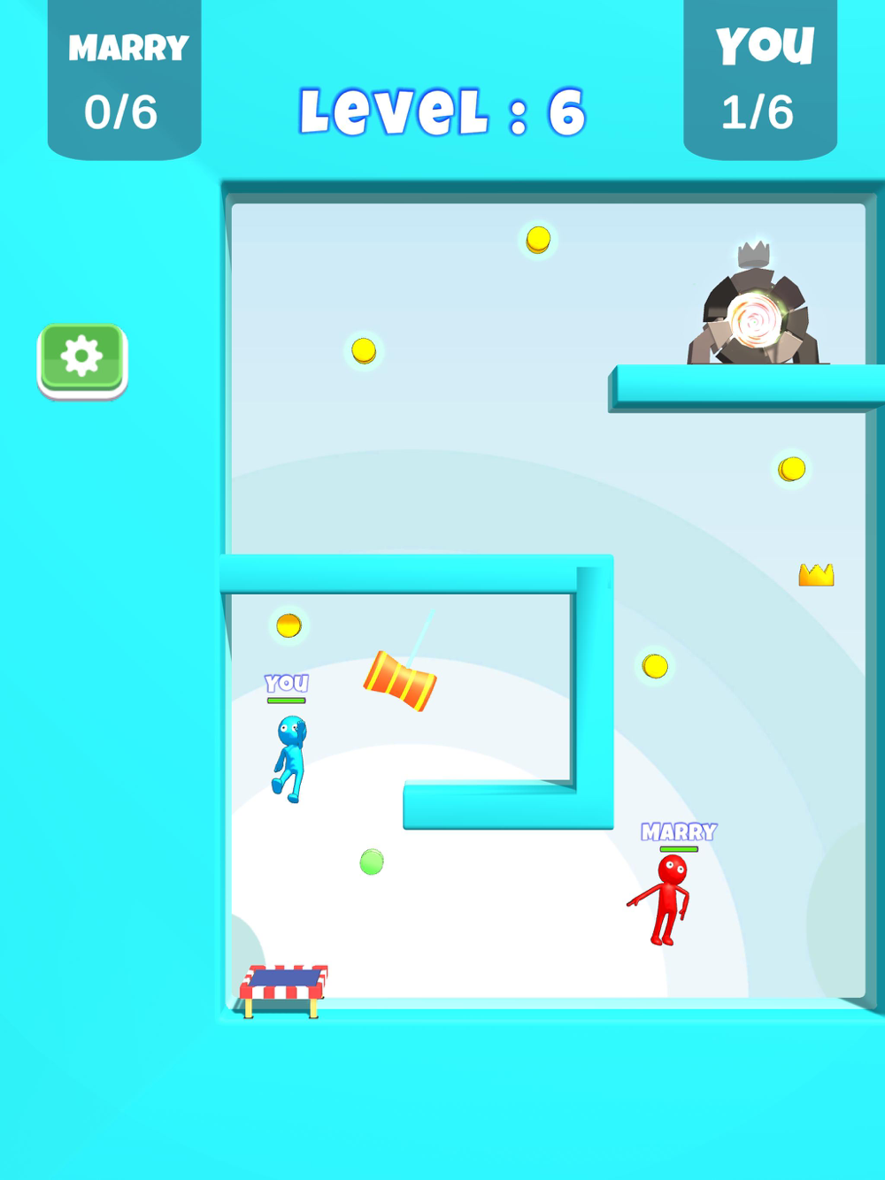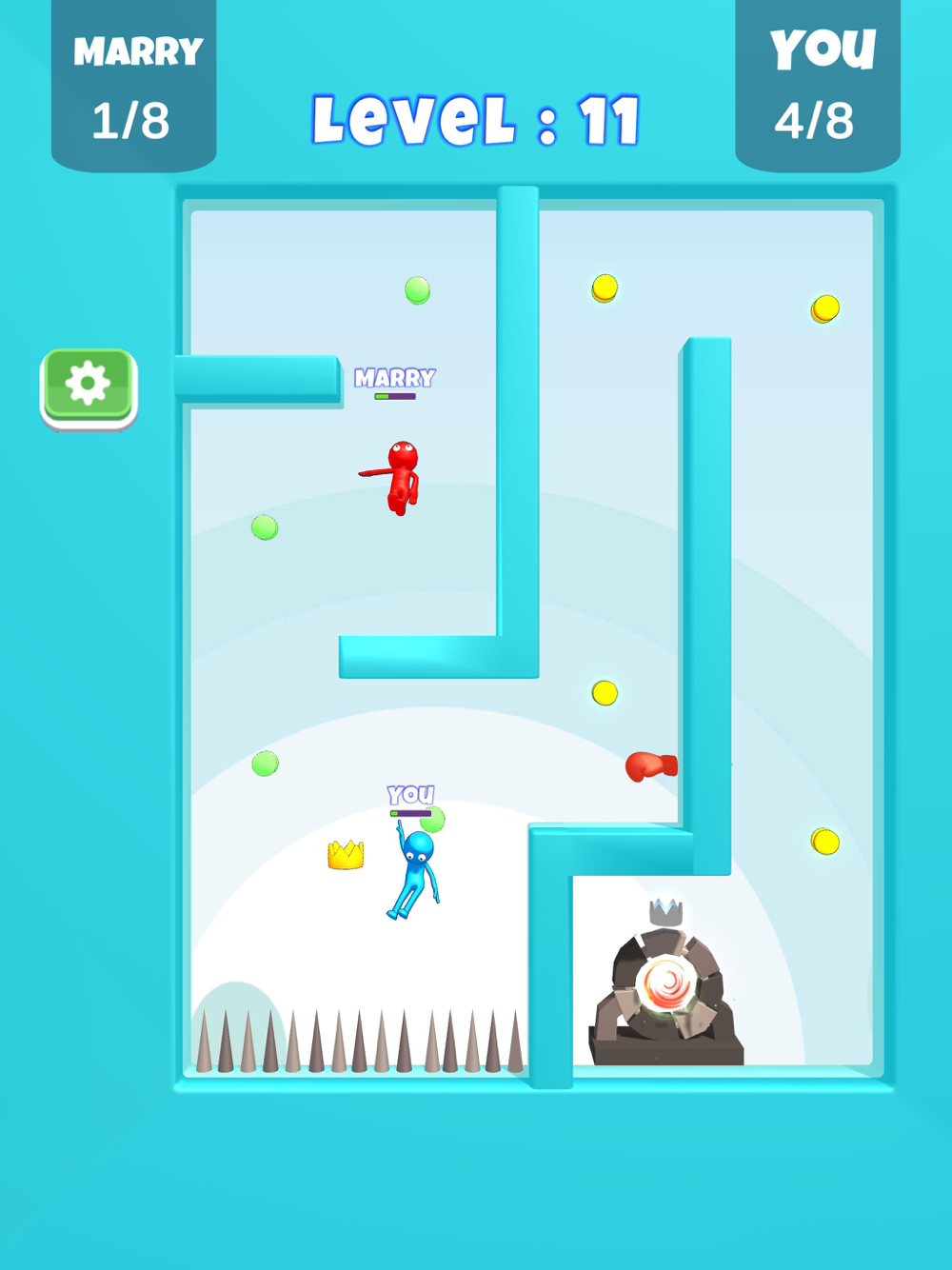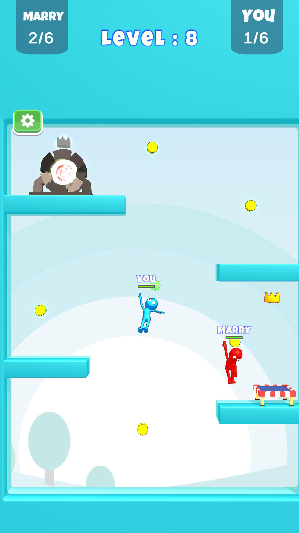 Quickly complete the checkpoints, be the first one to reach to the portal! Don't forget, it's impossible to go through the portal without the crown.