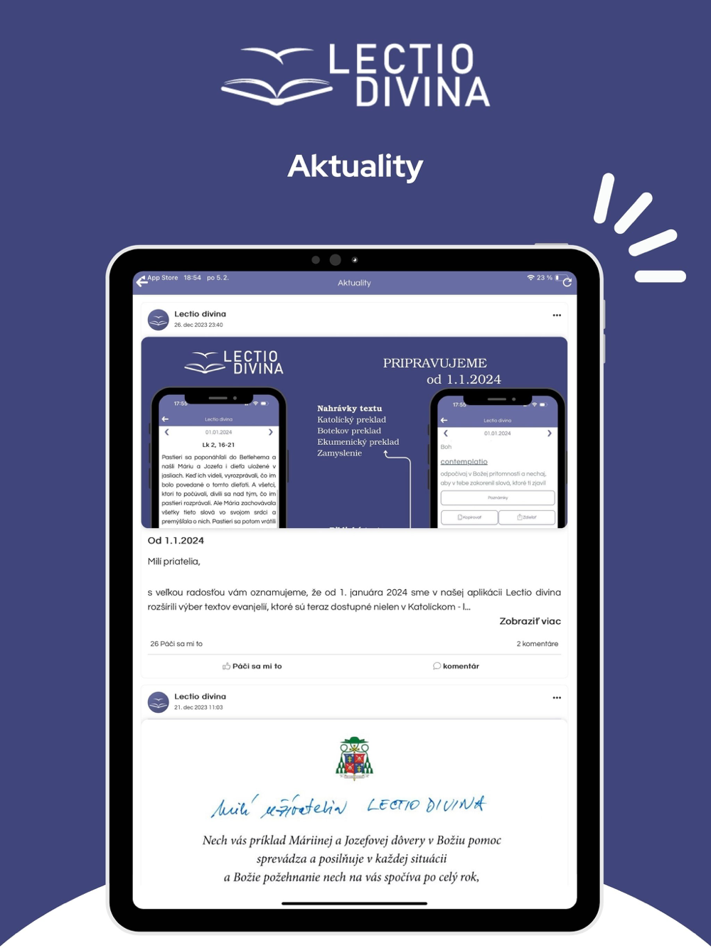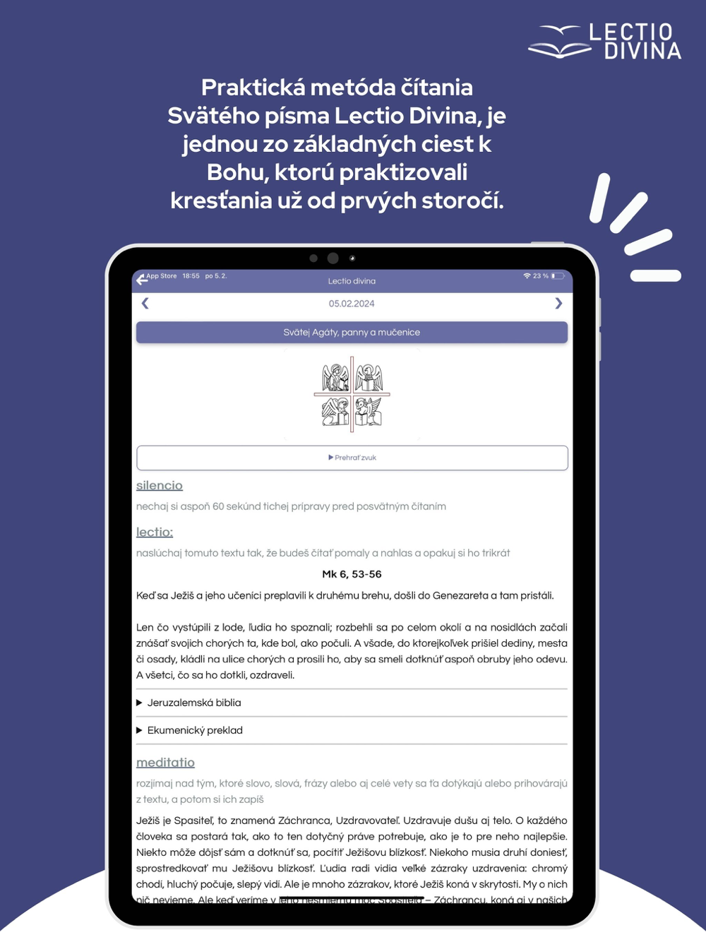 Lectio Divina je starobylá forma modlitby, ktorú odpradávna praktizovali tak rehoľné komunity, ako aj jednotlivci. Pozývame vás pripojiť sa a dať Božiemu Slovu priestor vo vašom každodennom živote. Či už budete Lectio praktizovať sami alebo v rodine, prípadne v malých skupinách, váš život s Bohom sa prostredníctvom čítania jeho Slova začne prehlbovať.