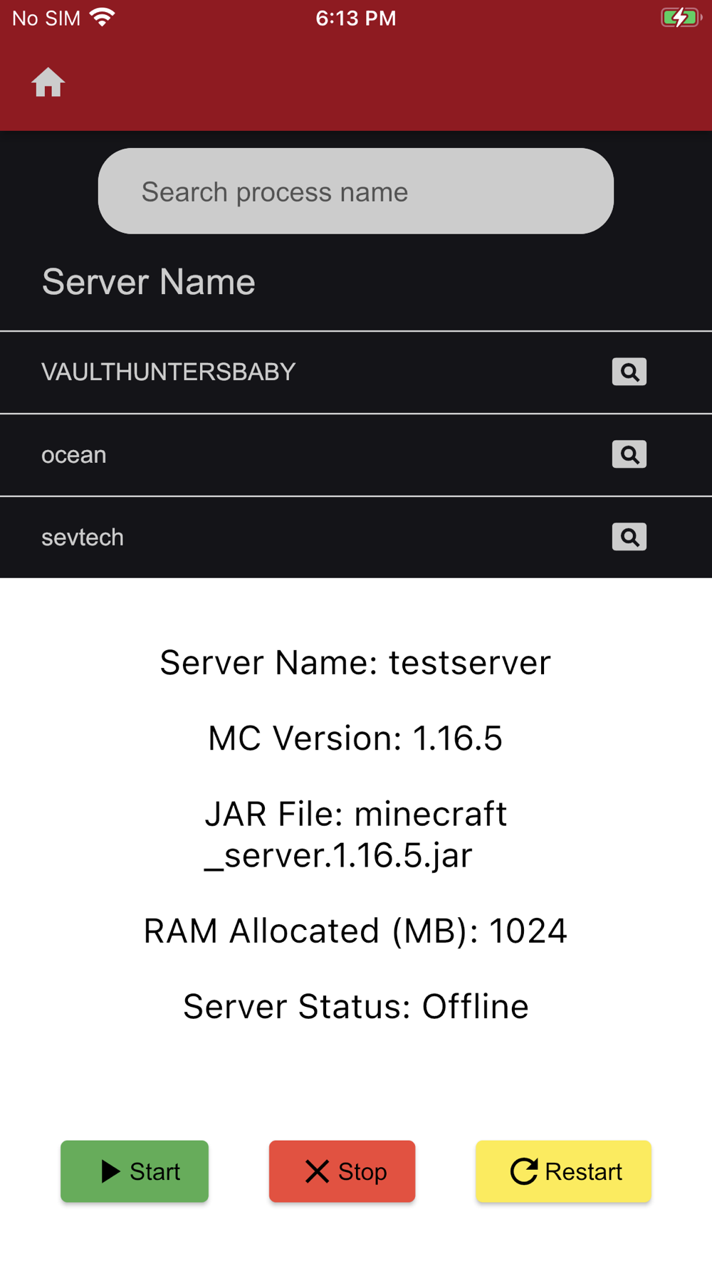 This app allows you to start, stop, restart, and view the basic details of servers managed by a MineOS instance. This app allows you to search among all of the servers on your MineOS instance. You can view the running Minecraft version, the JAR file used to run the server, and the maximum amount of RAM allocated to the server. You must have the credentials to an account with SSH and sudo access to the MineOS instance. It is recommended to use the root account.