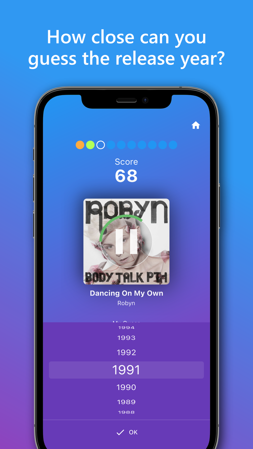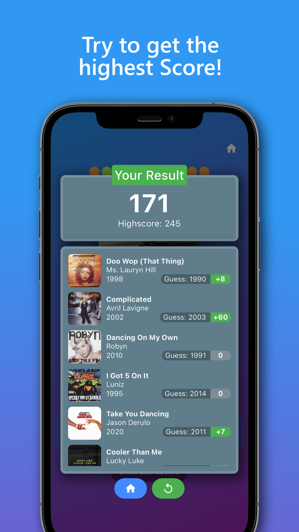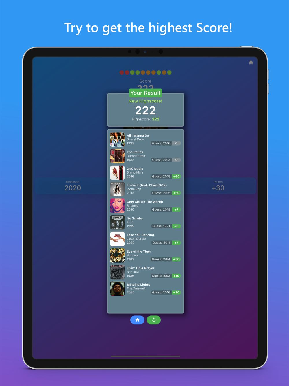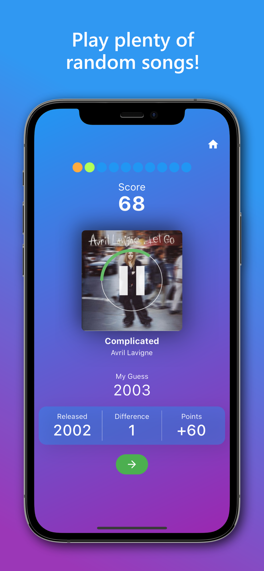Do you think you know well about the songs from the last 50 years? Song Quiz: Guess The Year is all about guessing the release year from different songs! Try to guess close or even the exact release year to get the highes score!